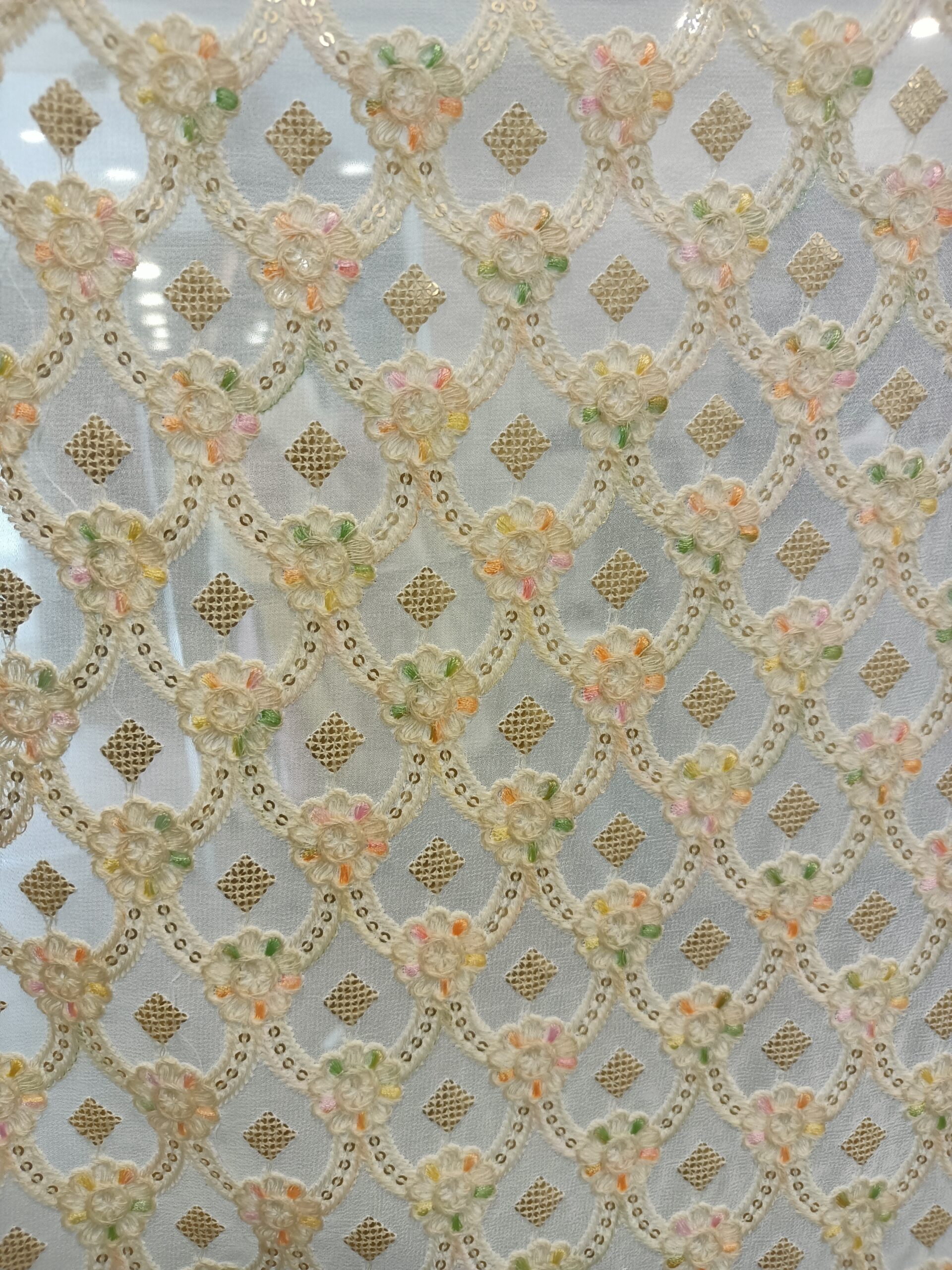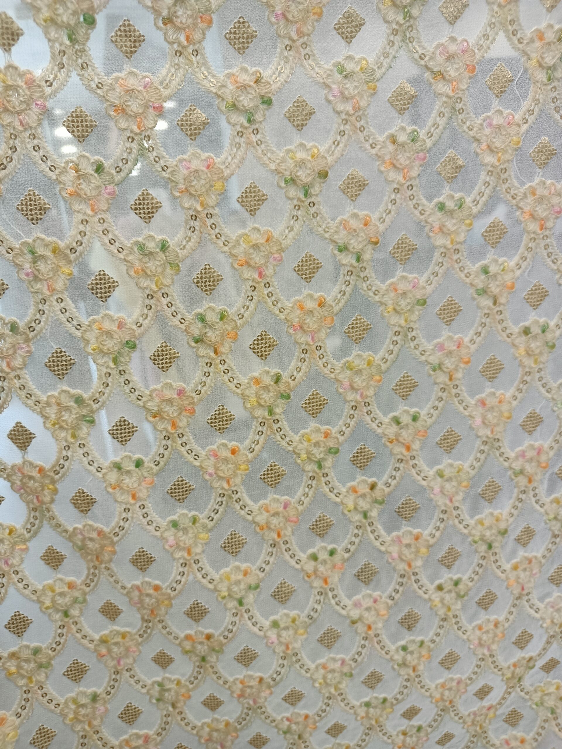 Be the first to review “Georgette Base colour Embroider Dyeble Designer Fabric”