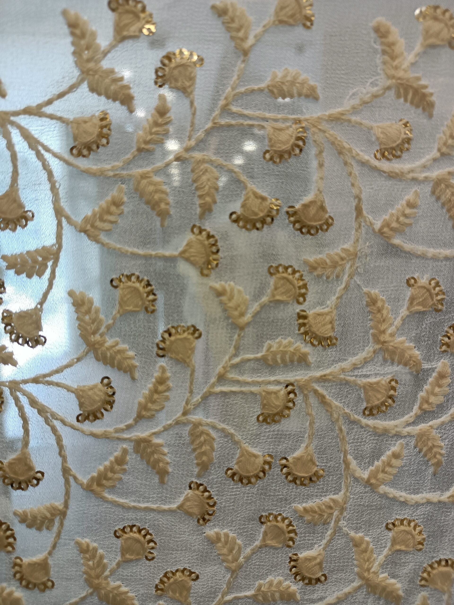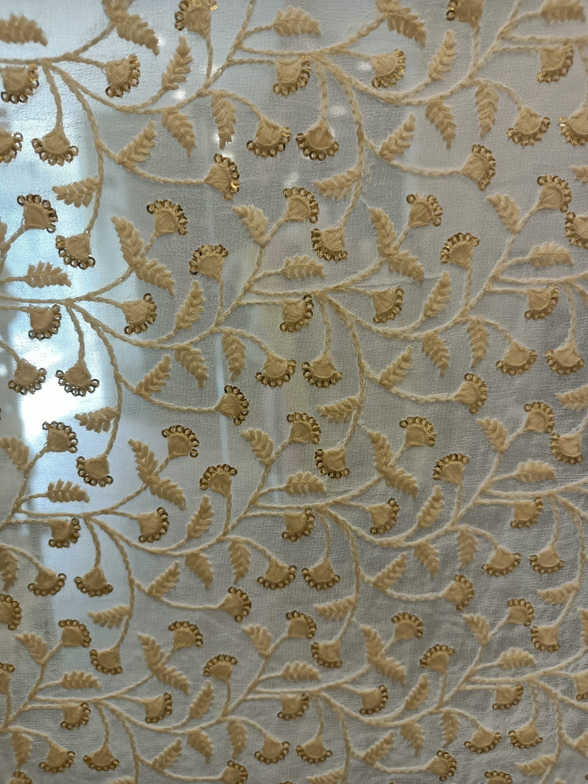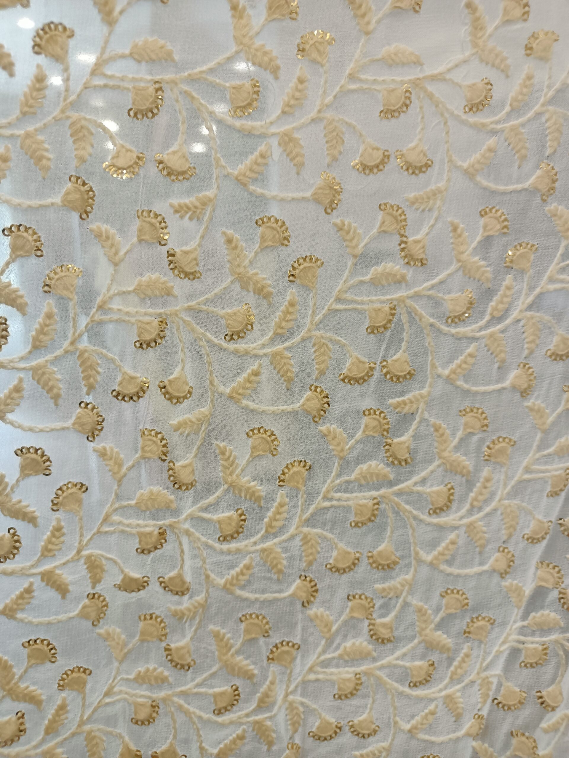 Georgette Base  Flower Embroidery Dyeble Fabric-