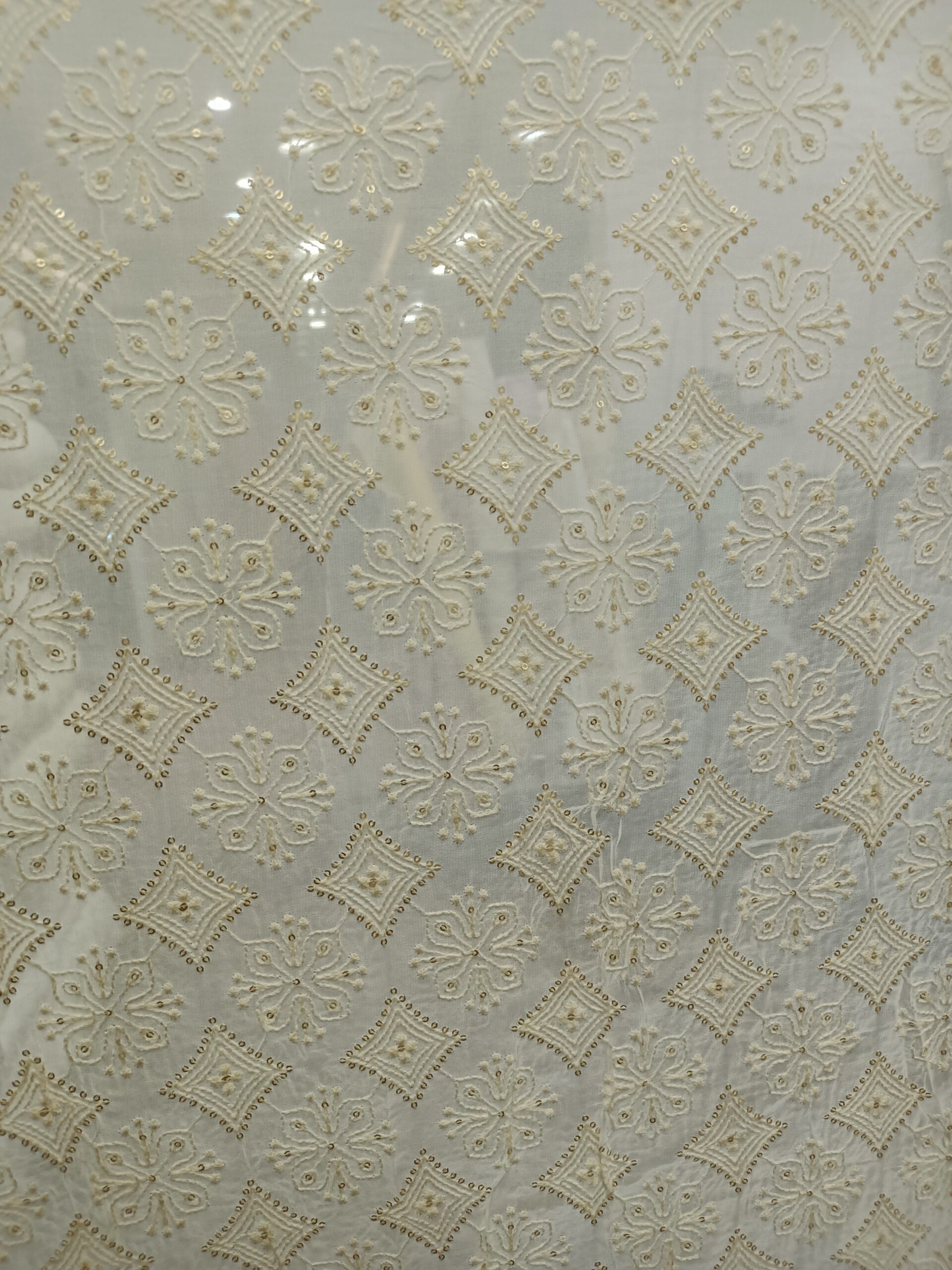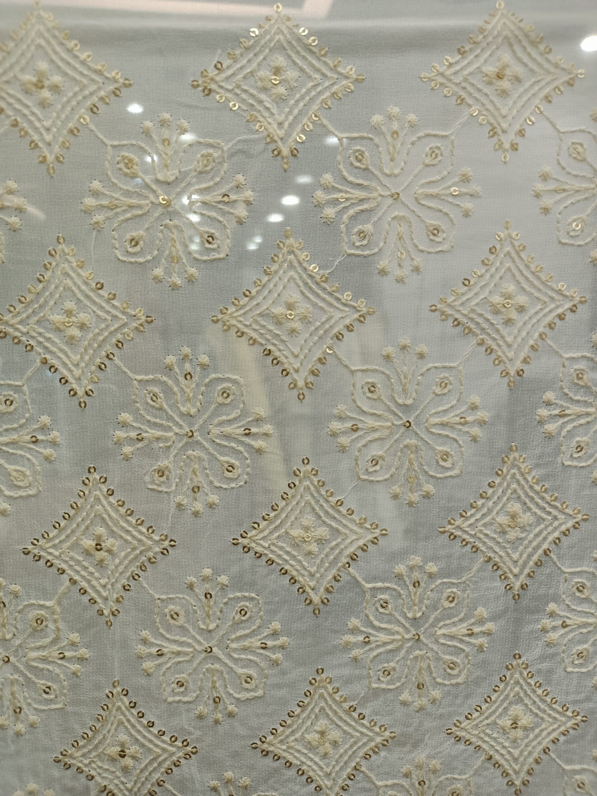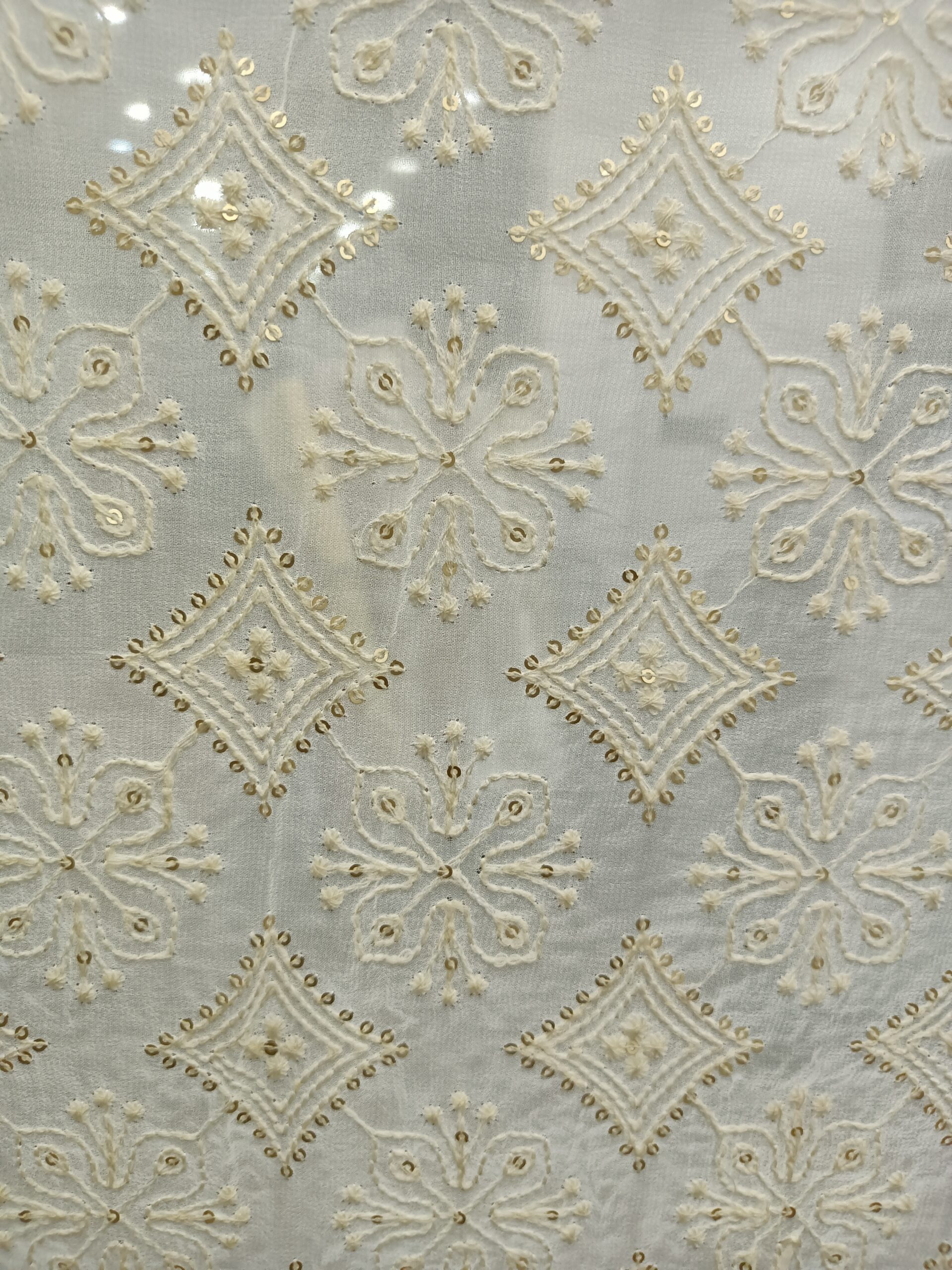 Georgette Base  Embroidery Dyeble Fabric- CHICKEN CURRY
