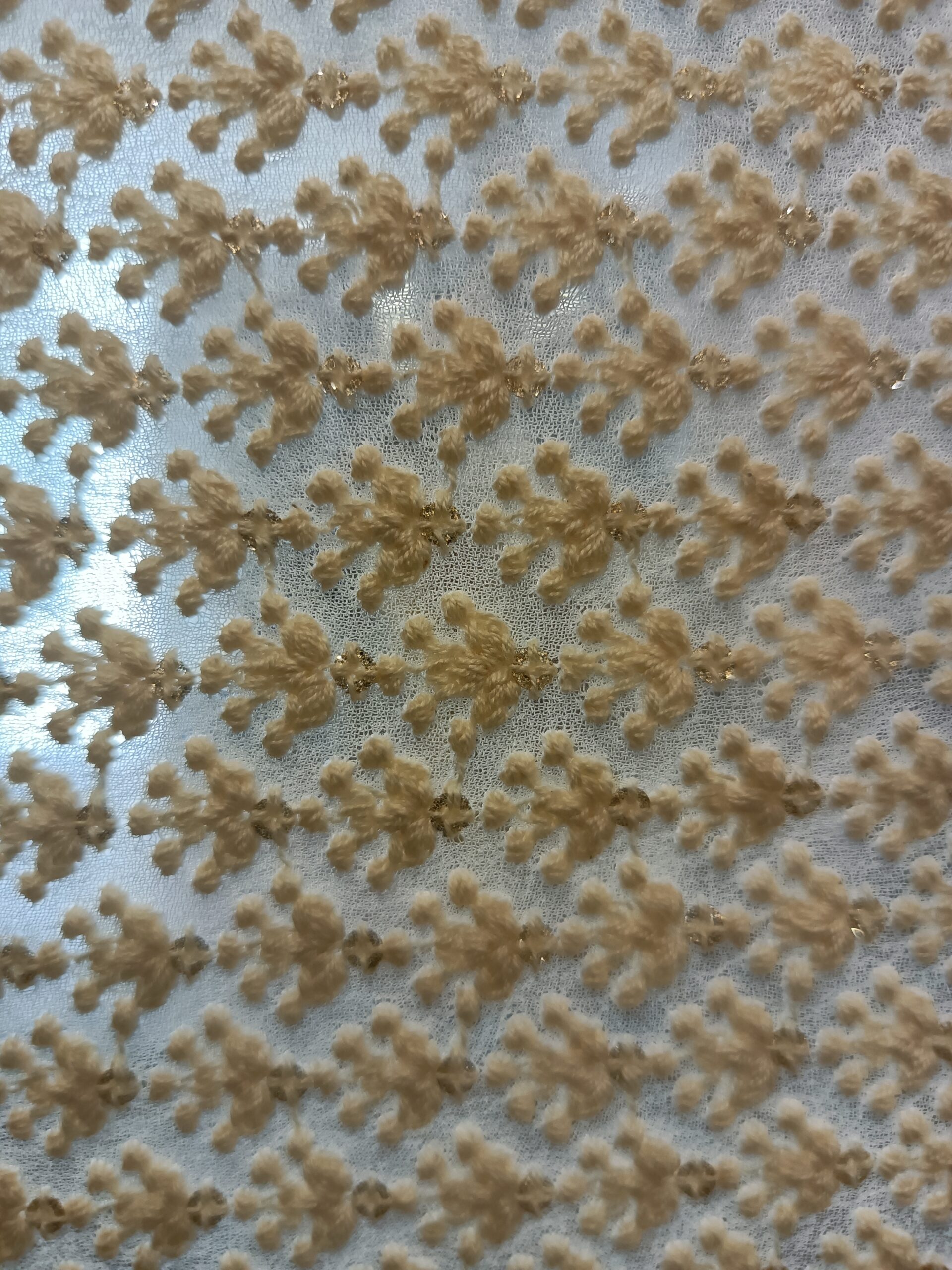 Georgette Base  Embroidery Dyeble Fabric-CHICKEN CURRY