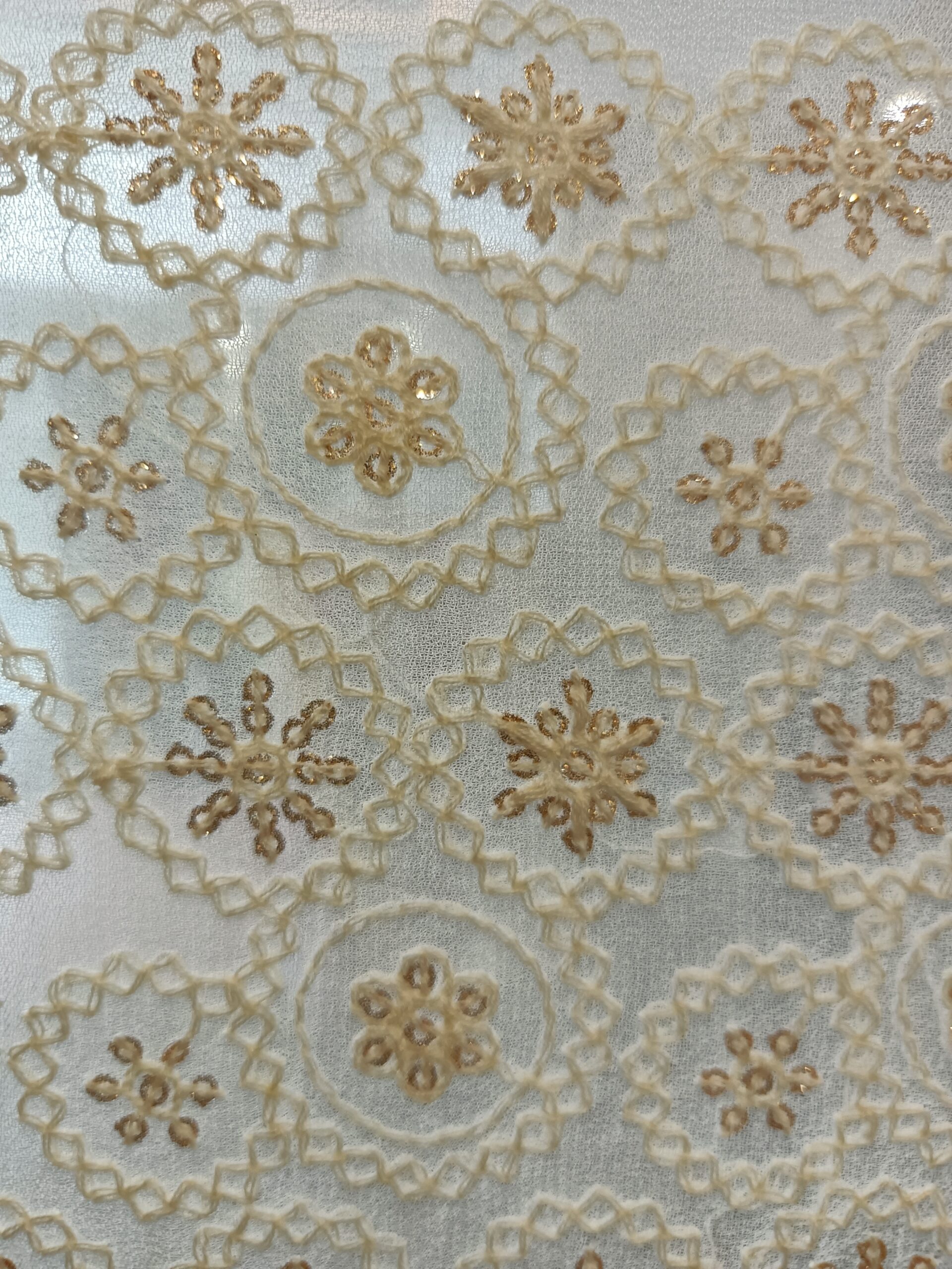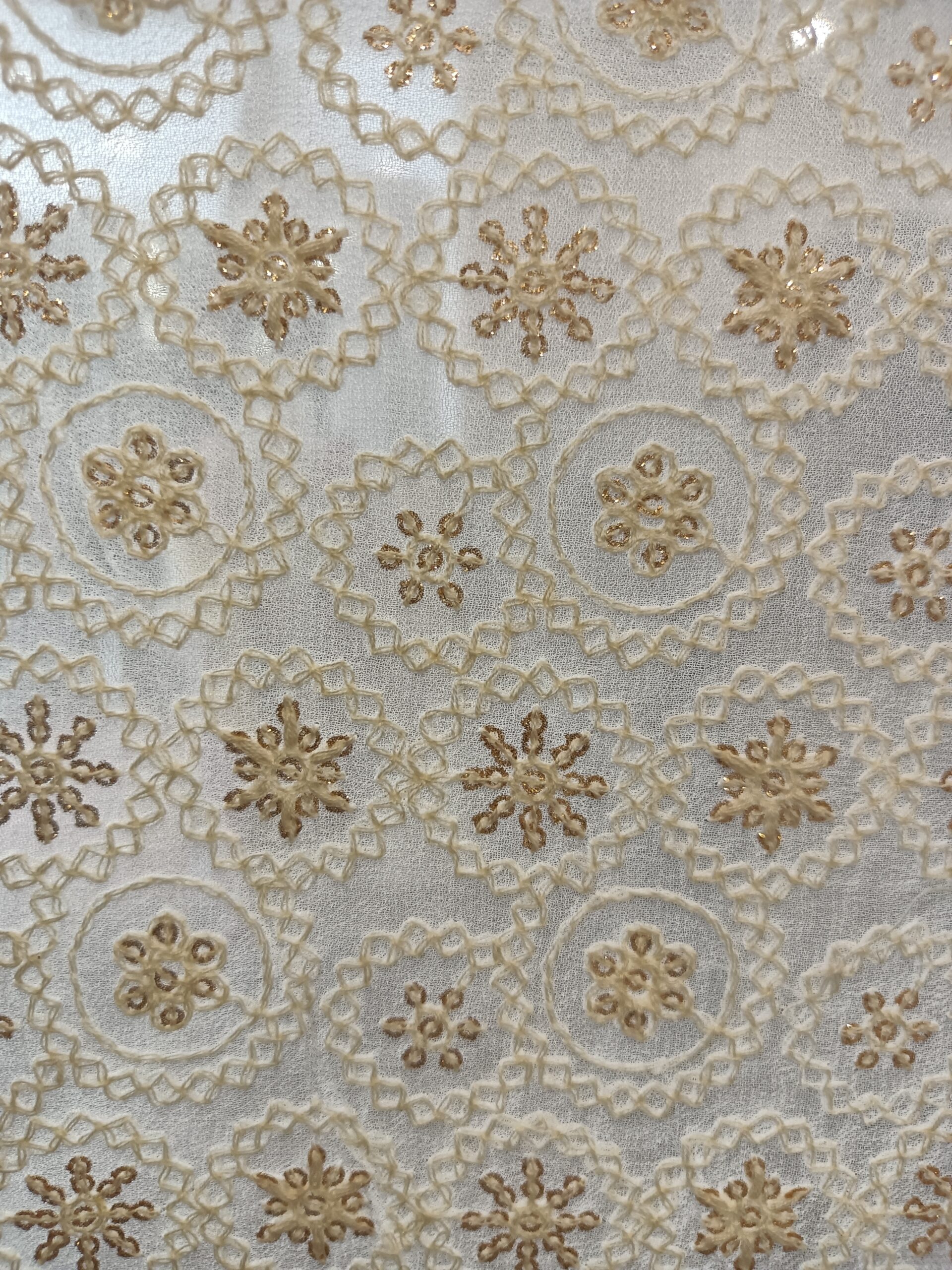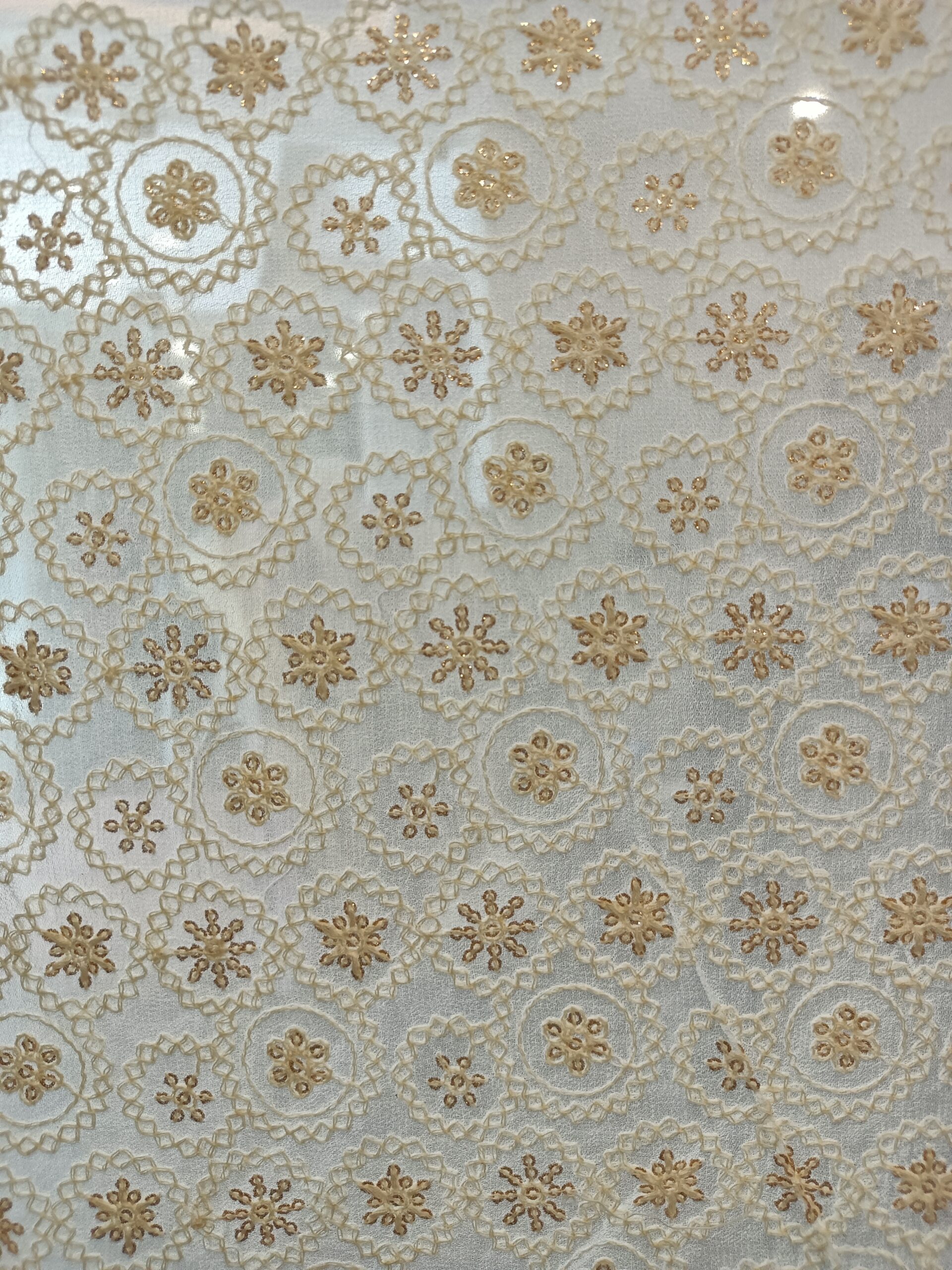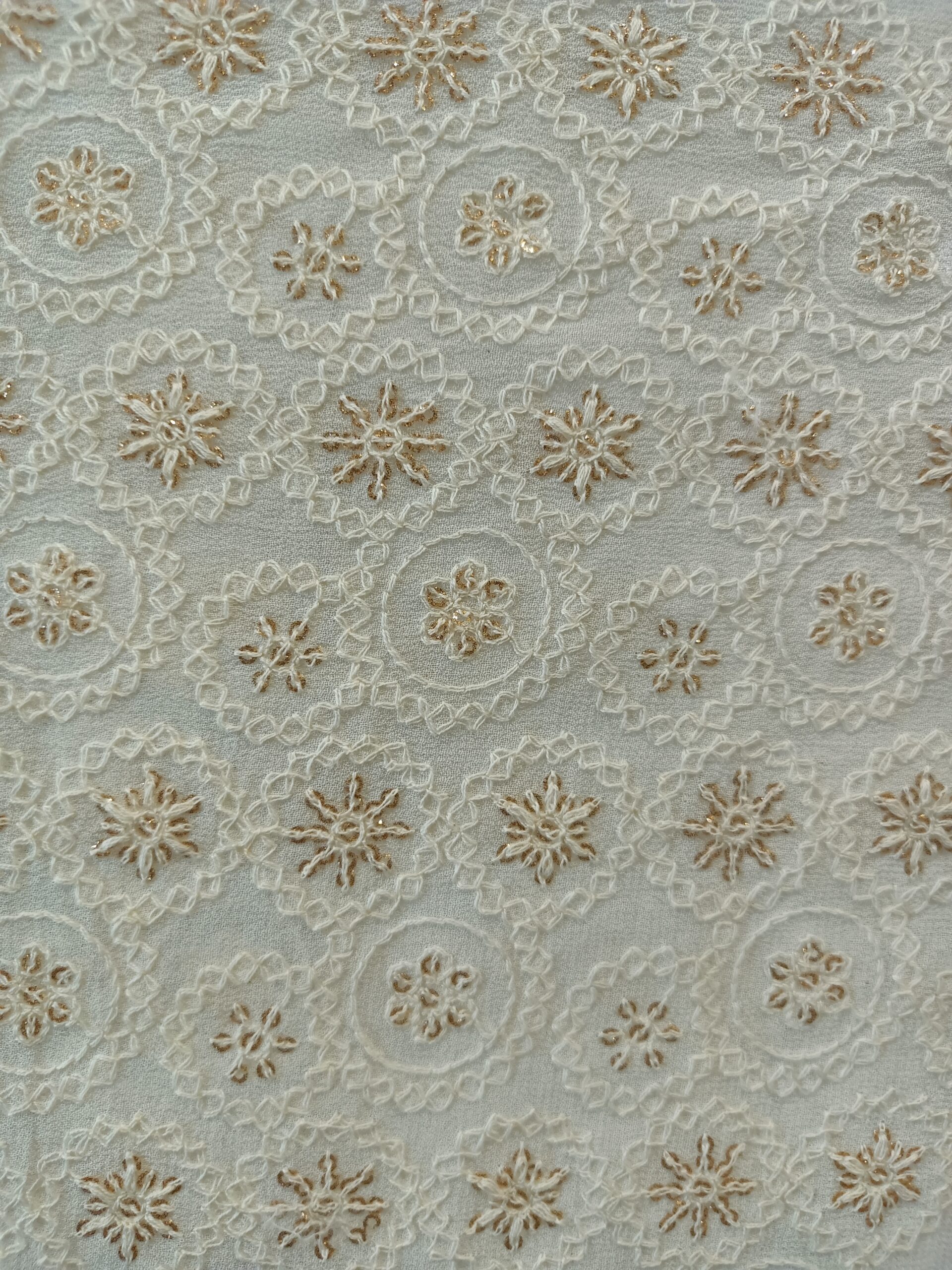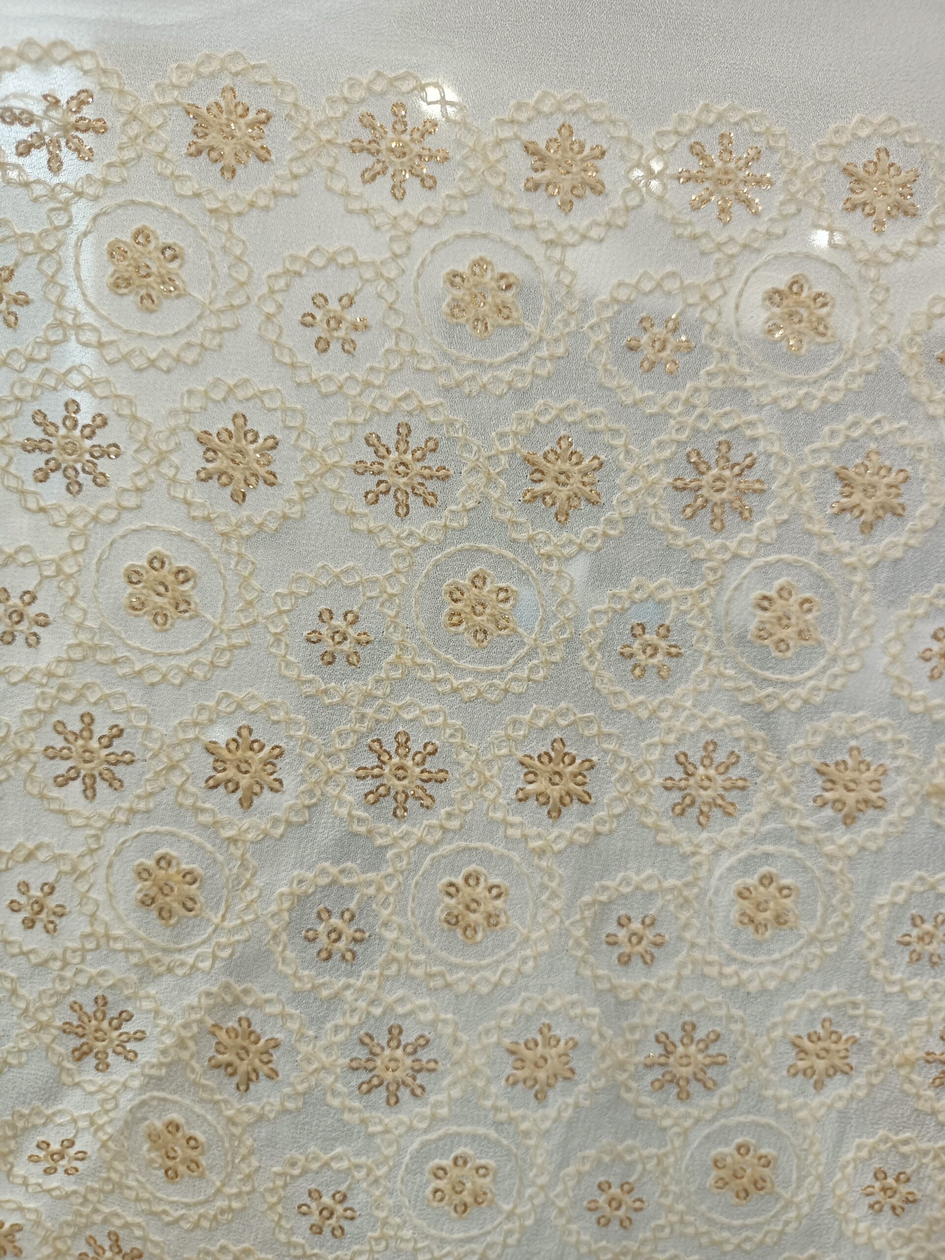Georgette Base Flower Embroidery Dyeble Fabric-