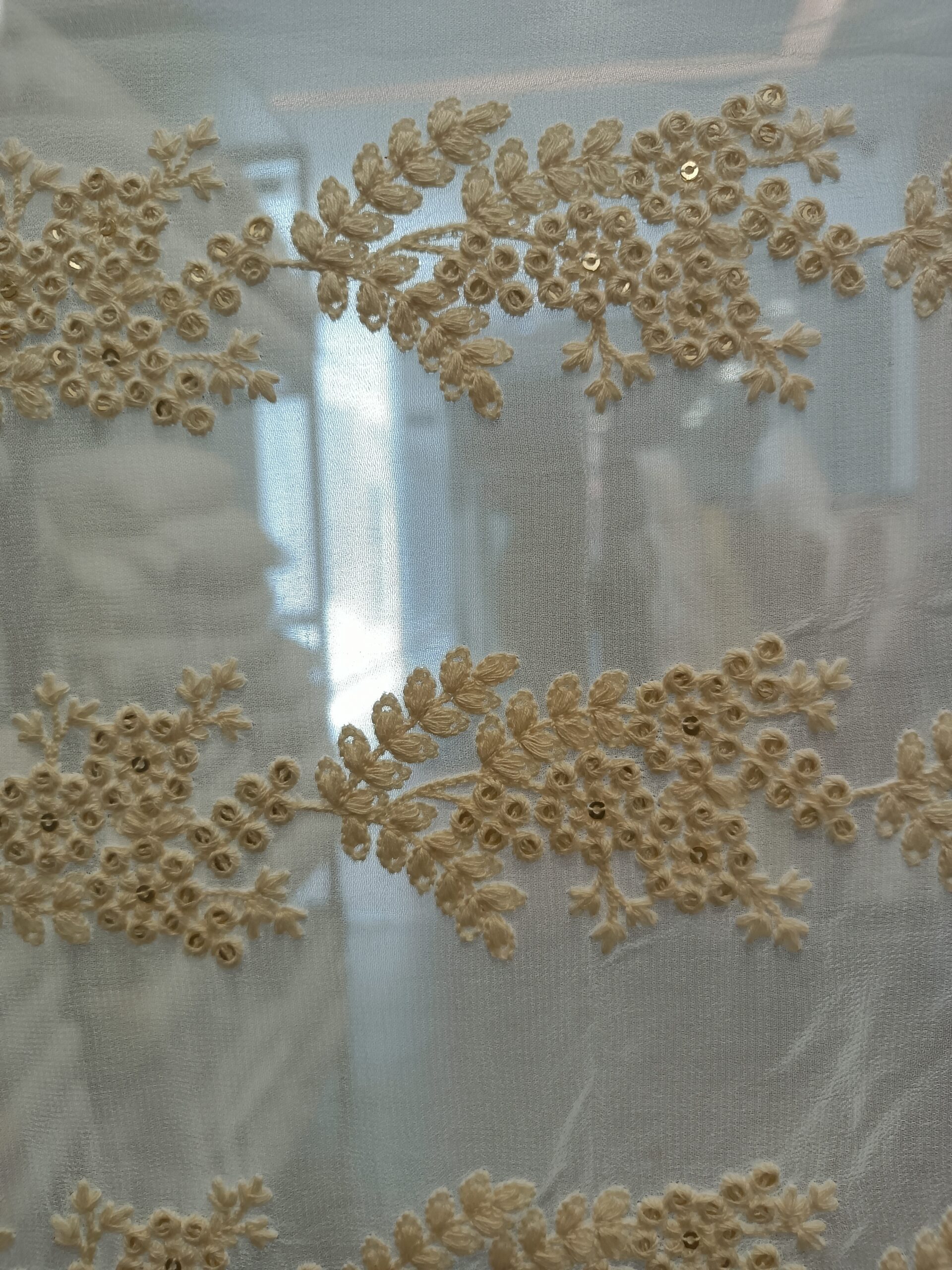 Georgette Base Flower Embroidery Dyeble Fabric