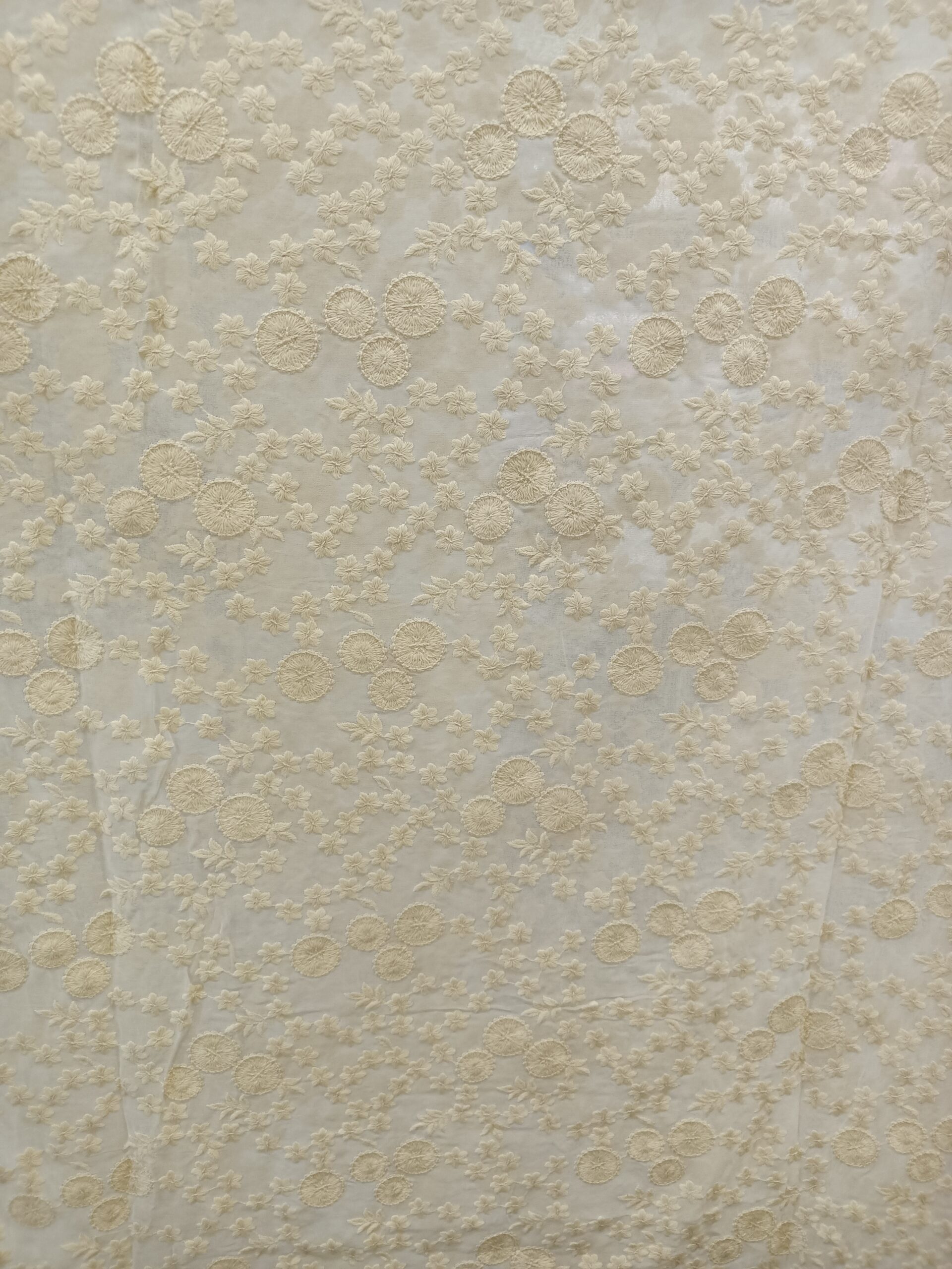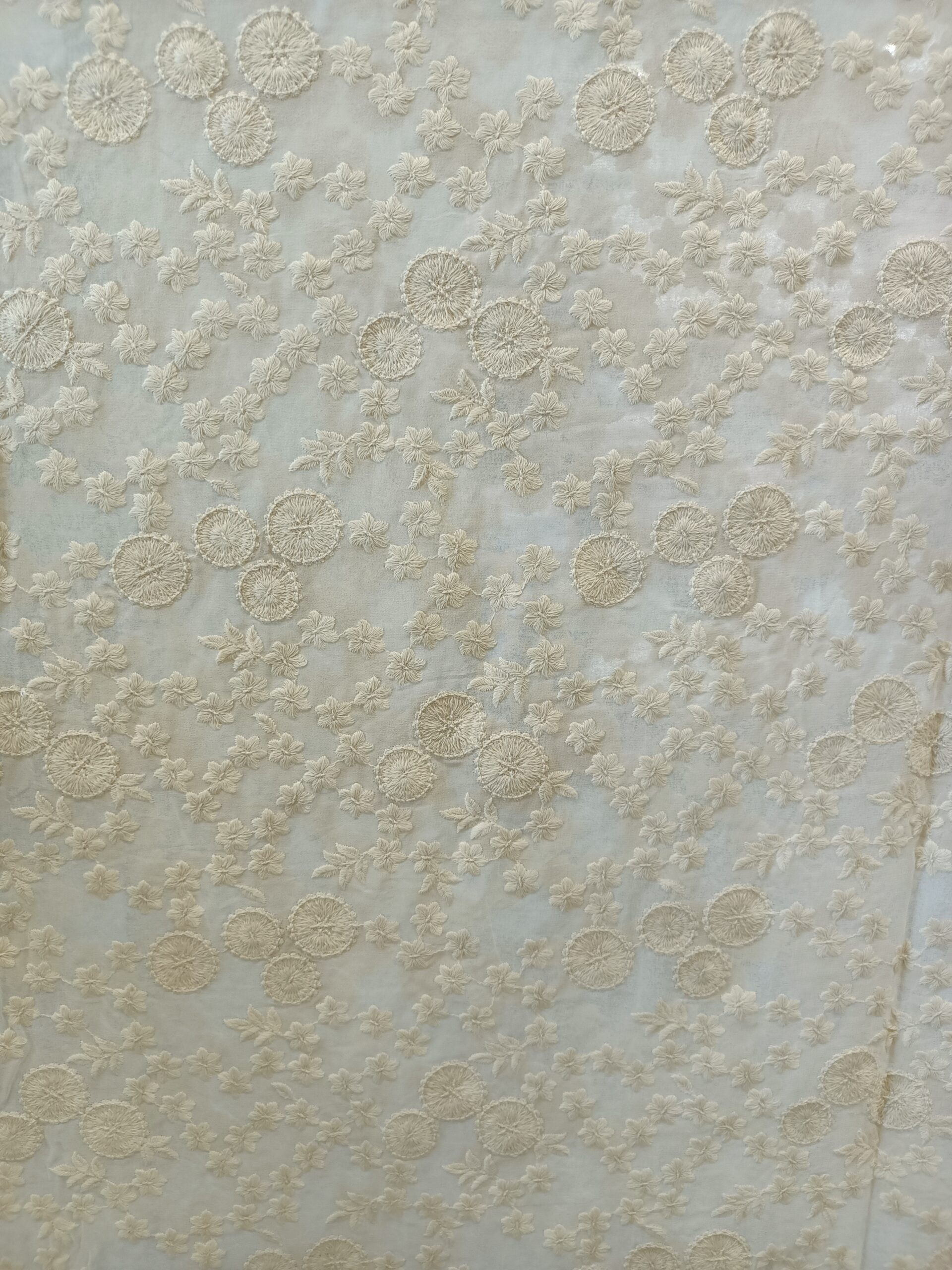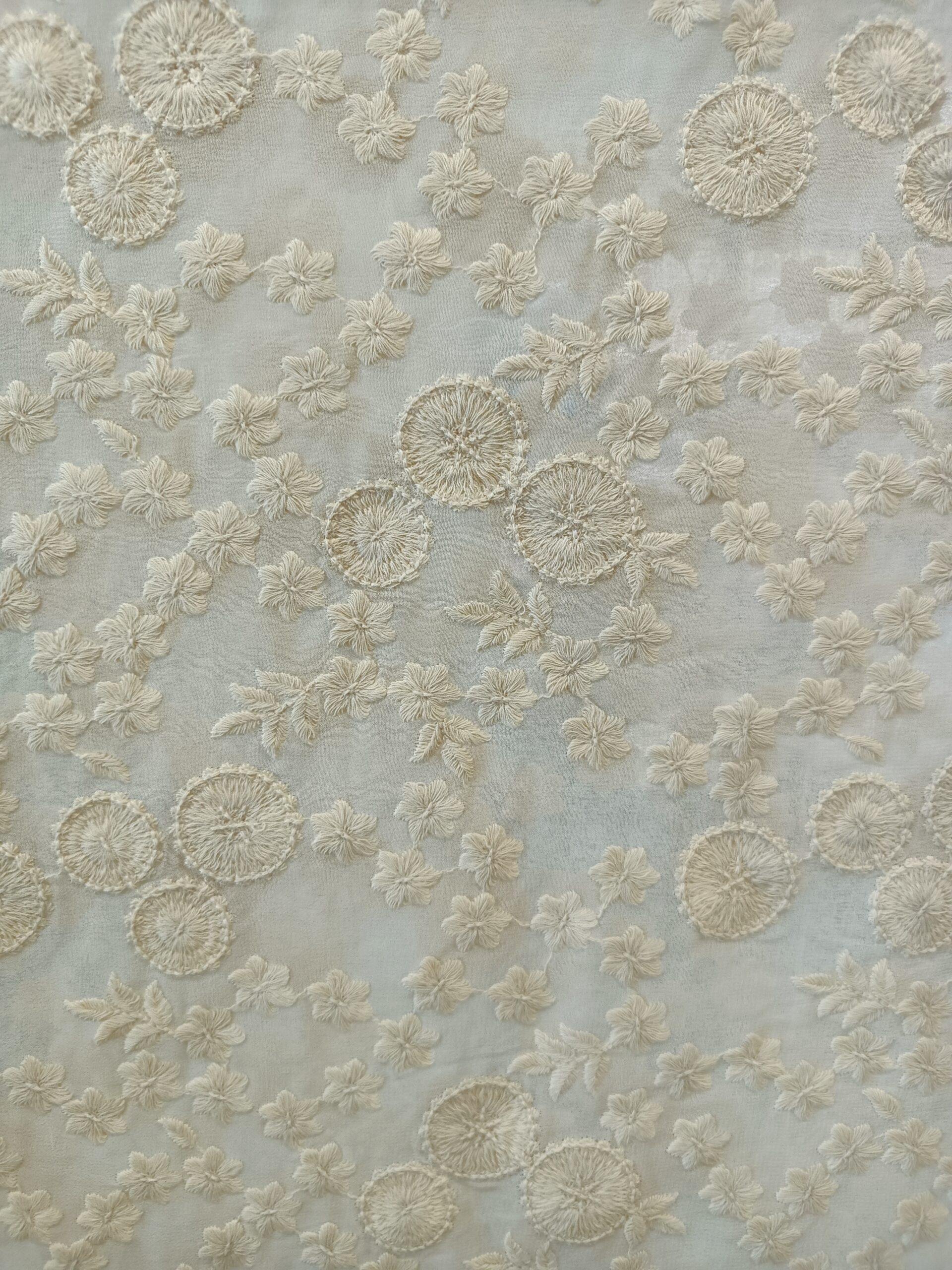 Georgette Base Flower Embroidery Dyeble Fabric