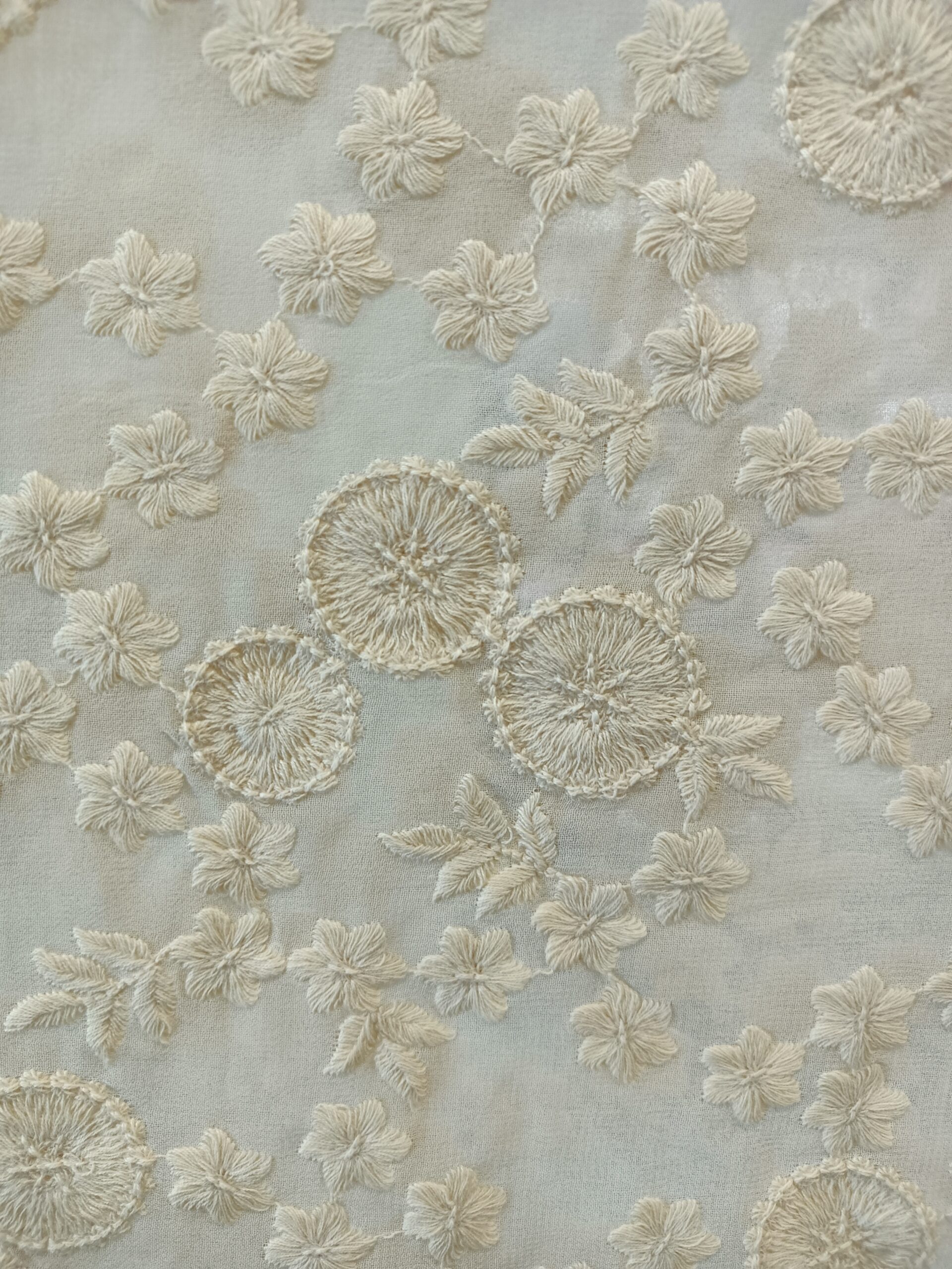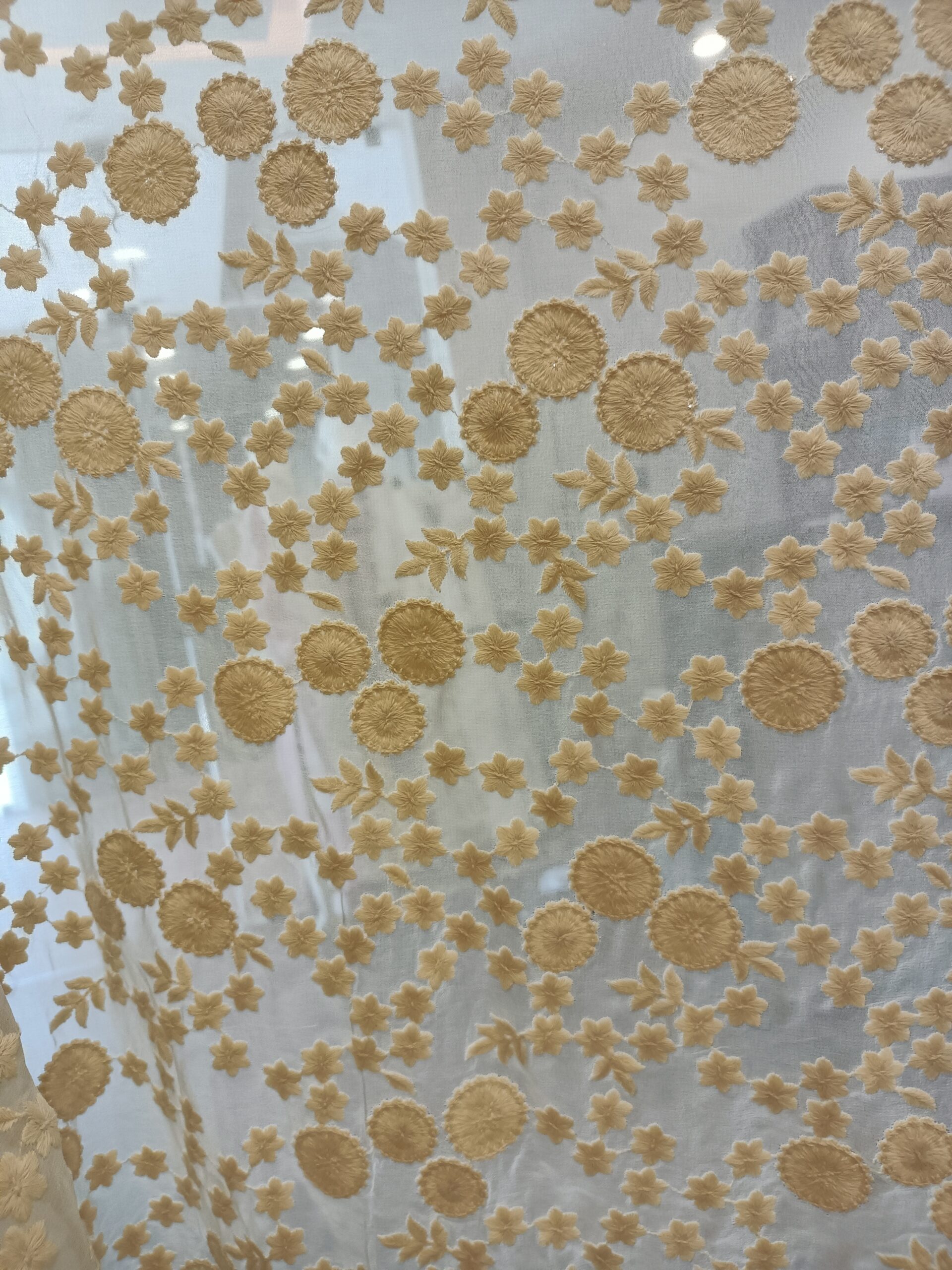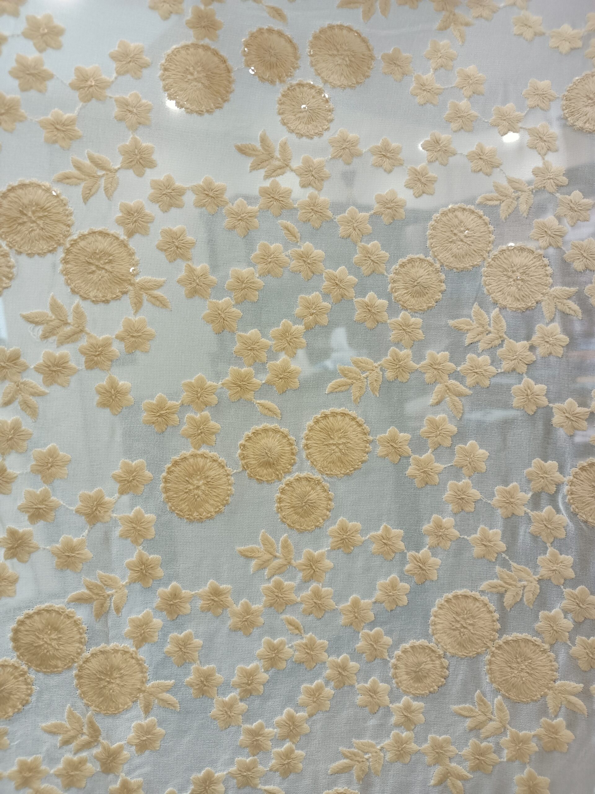 Georgette Base Flower Embroidery Dyeble Fabric