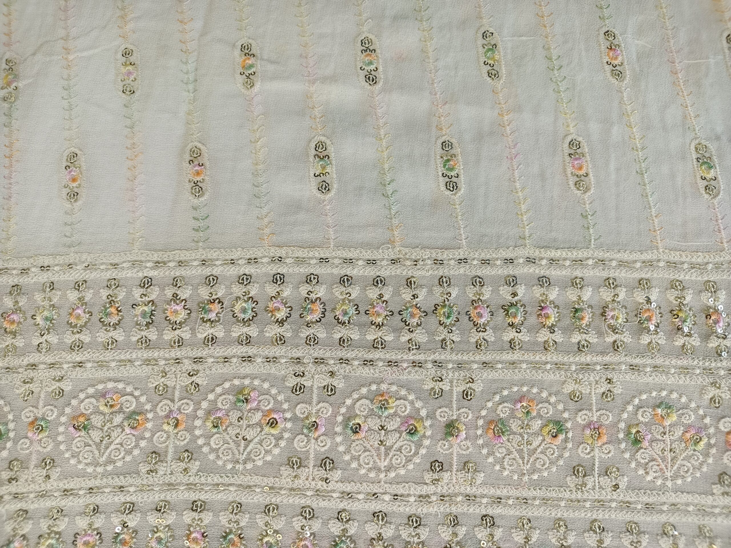Georgette Base Multiple sequence Designer Fabric with border