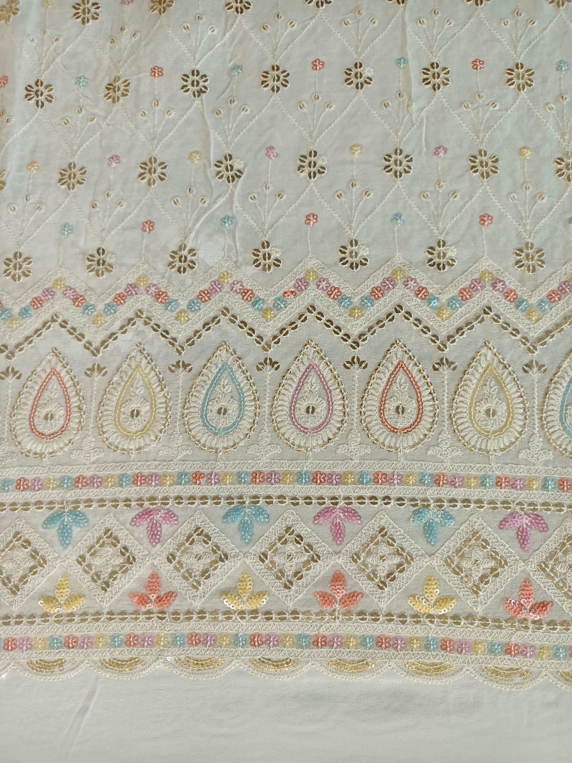 Georgette Base Multi colour sequnce Dyeble FabricÂ