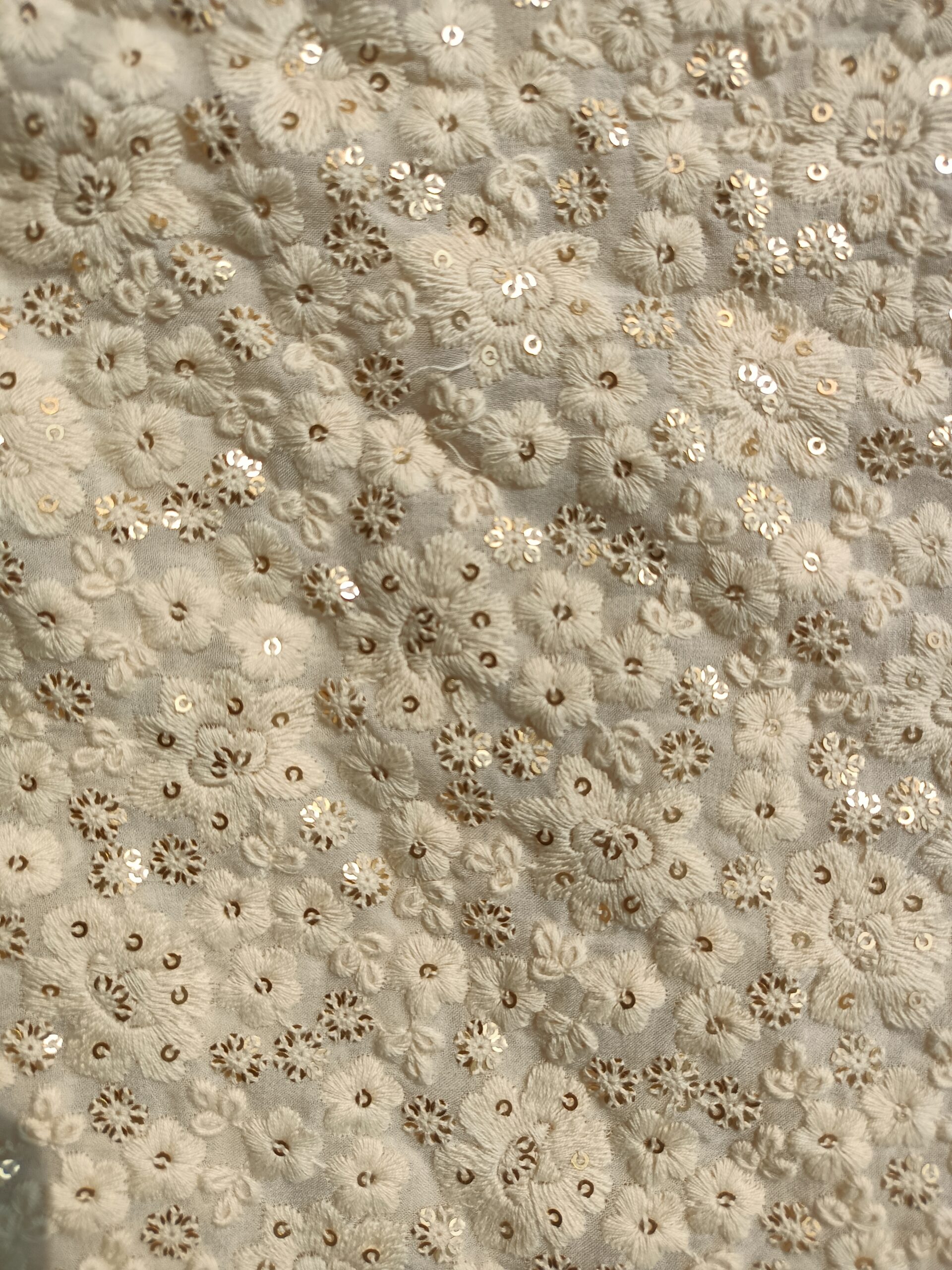 Georgette Base Flower Embroidery Dyeble Fabric