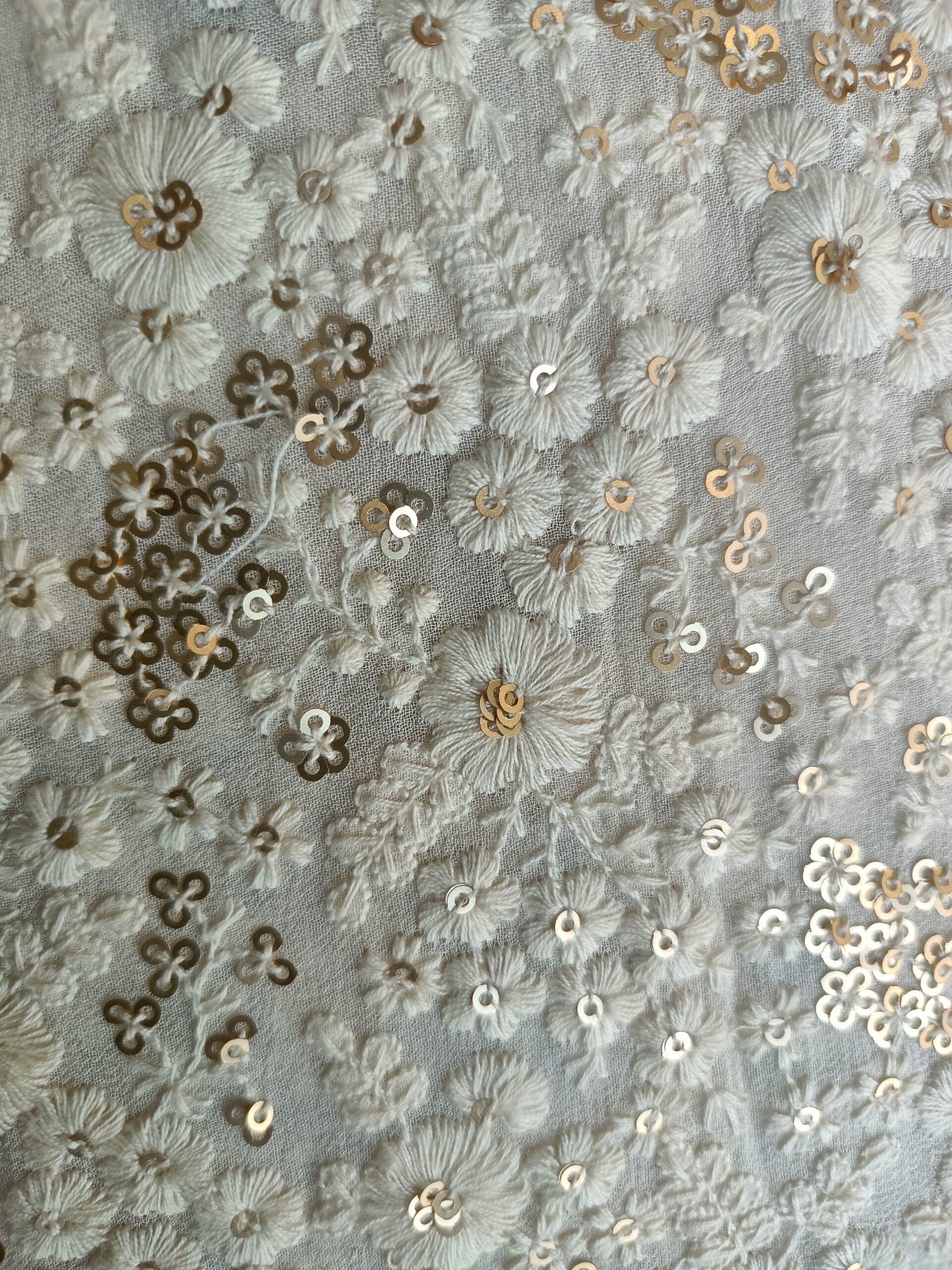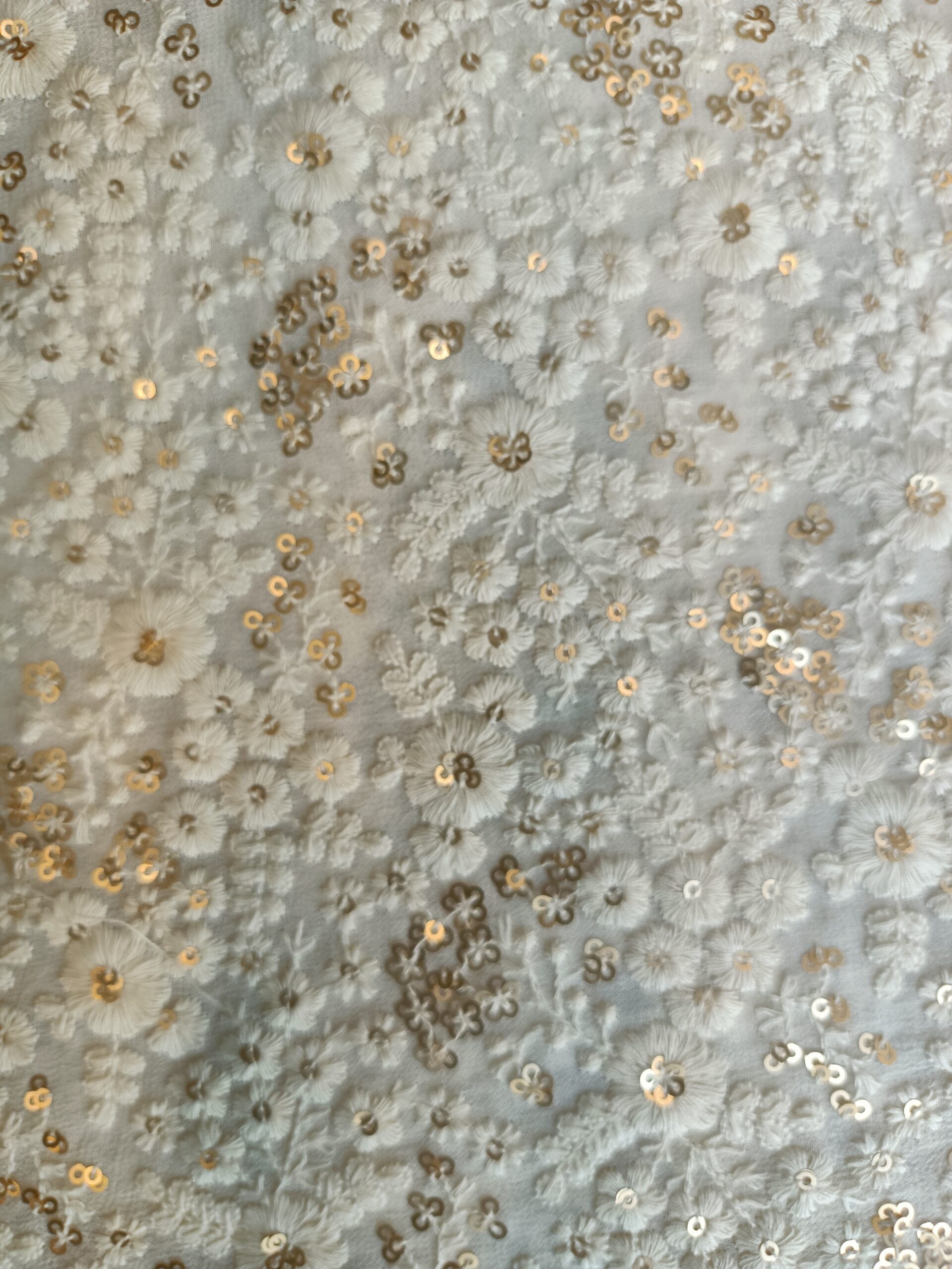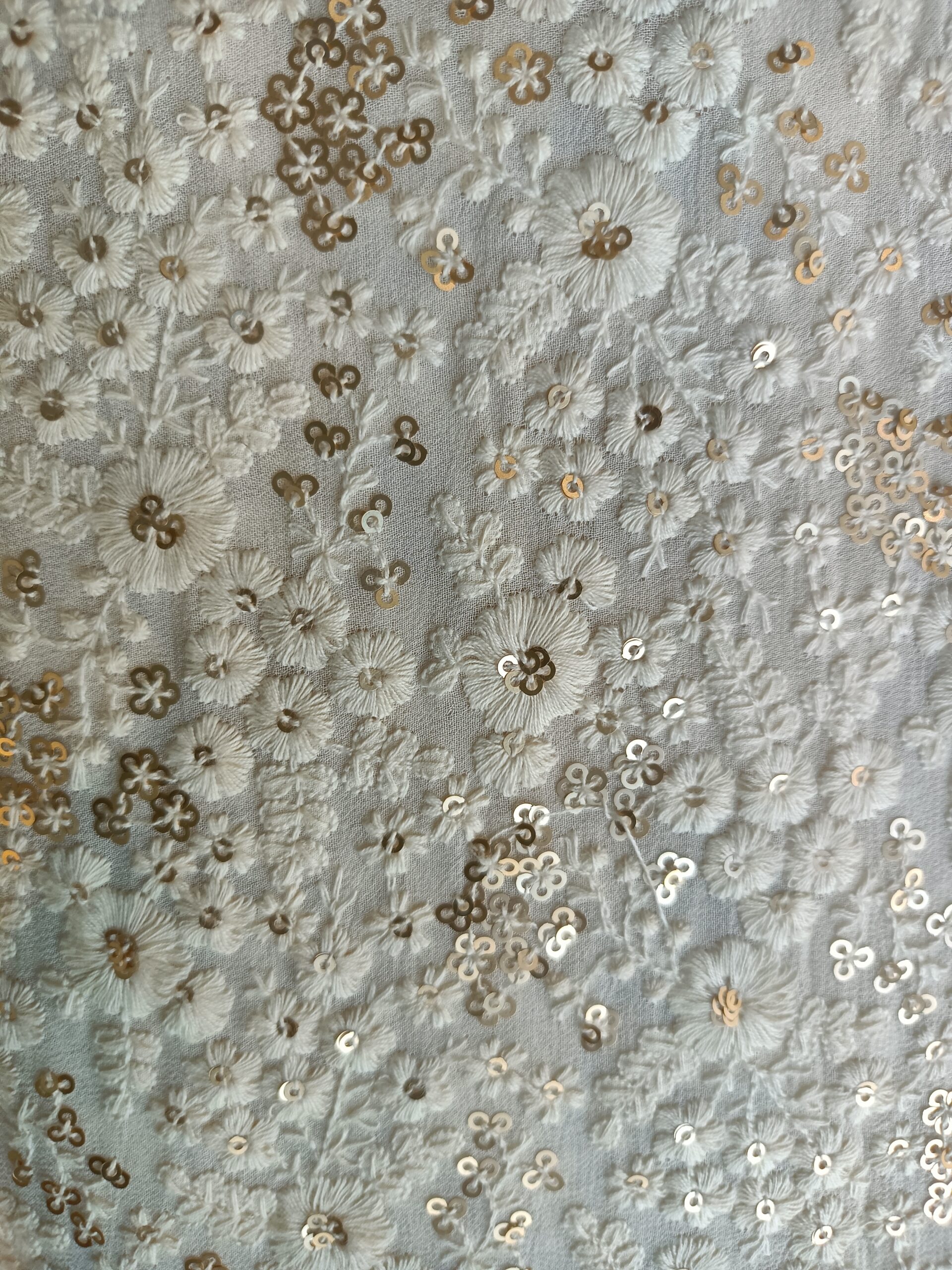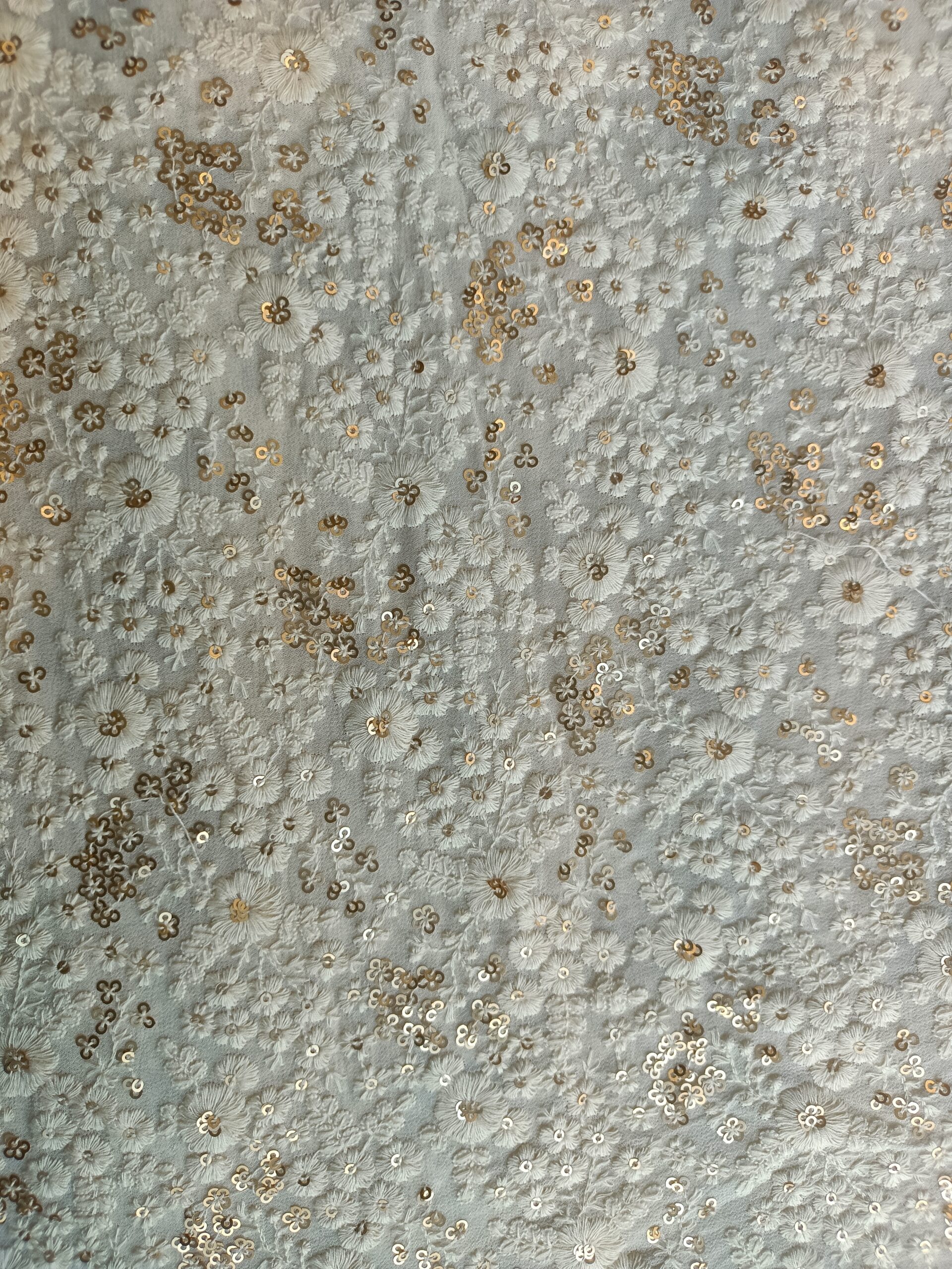 Georgette Base  Flower Embroidery Dyeble Fabric