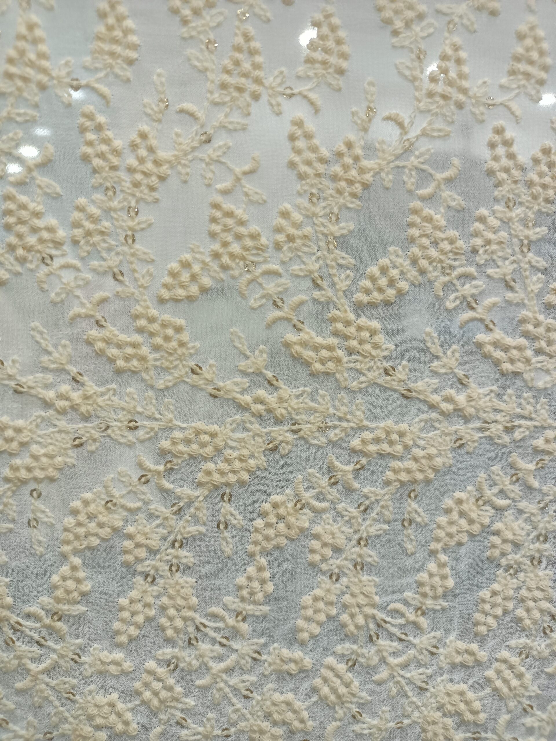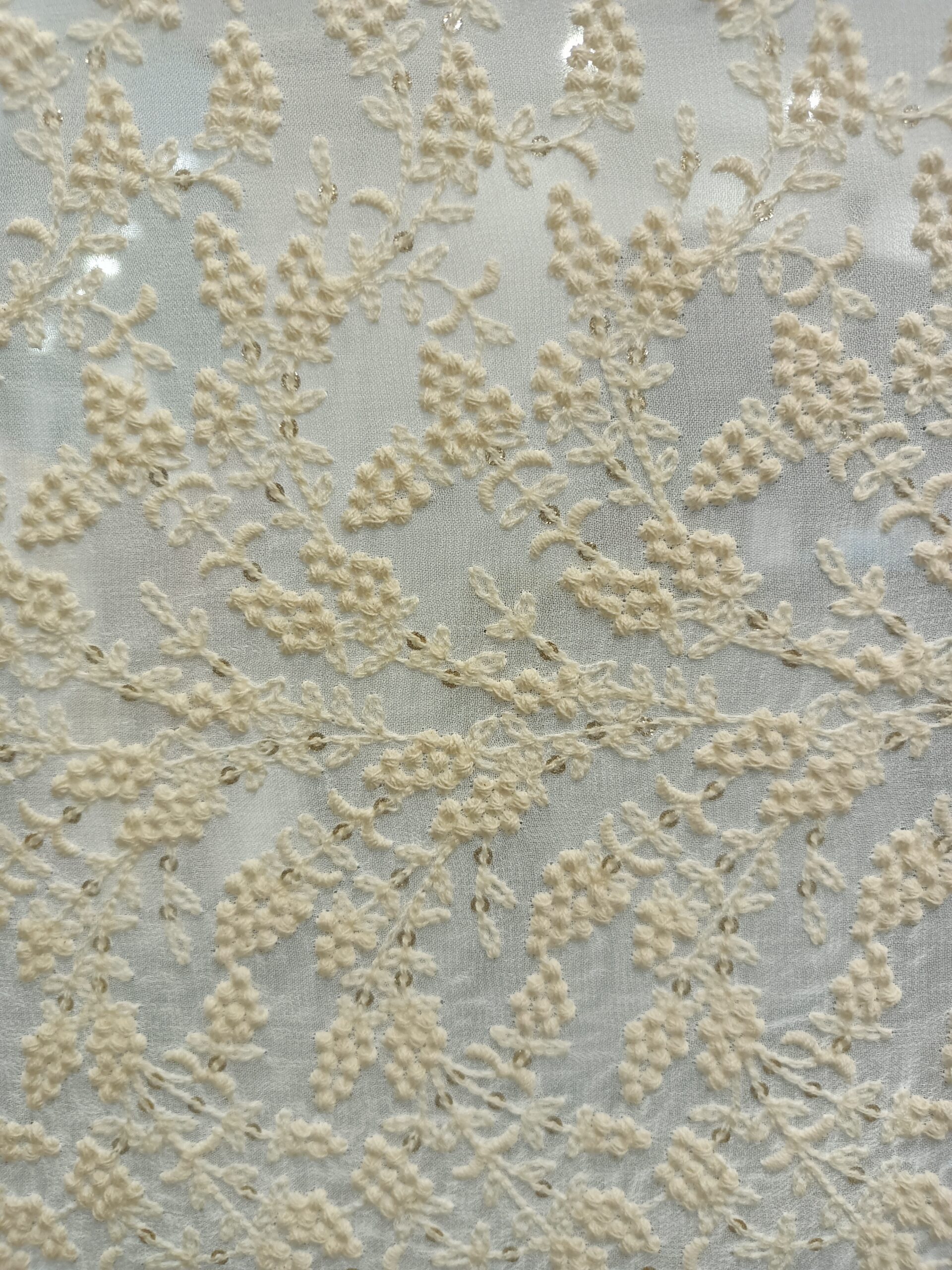 Georgette Base Flower Embroidery Dyeble Fabric