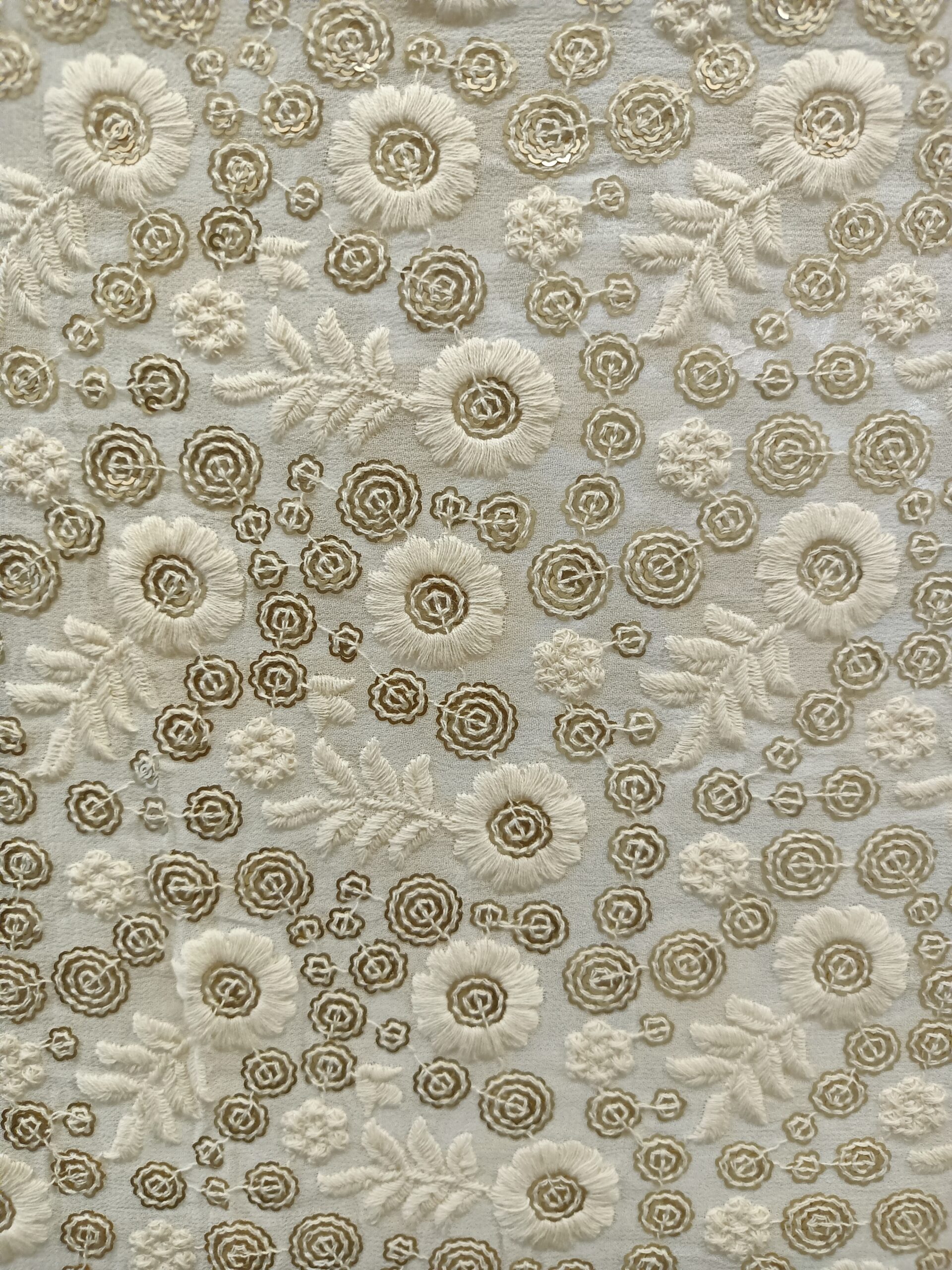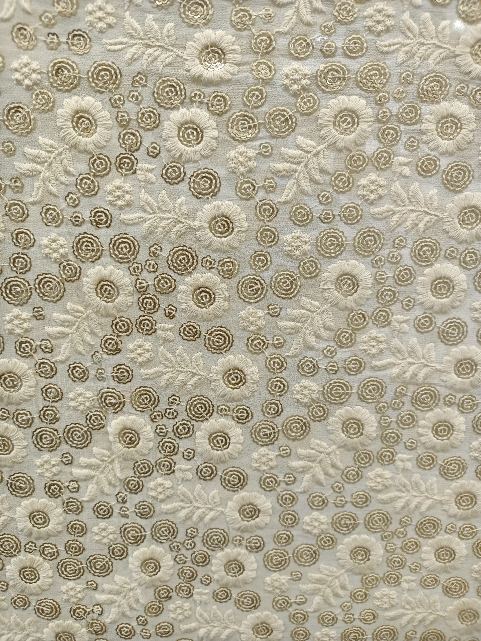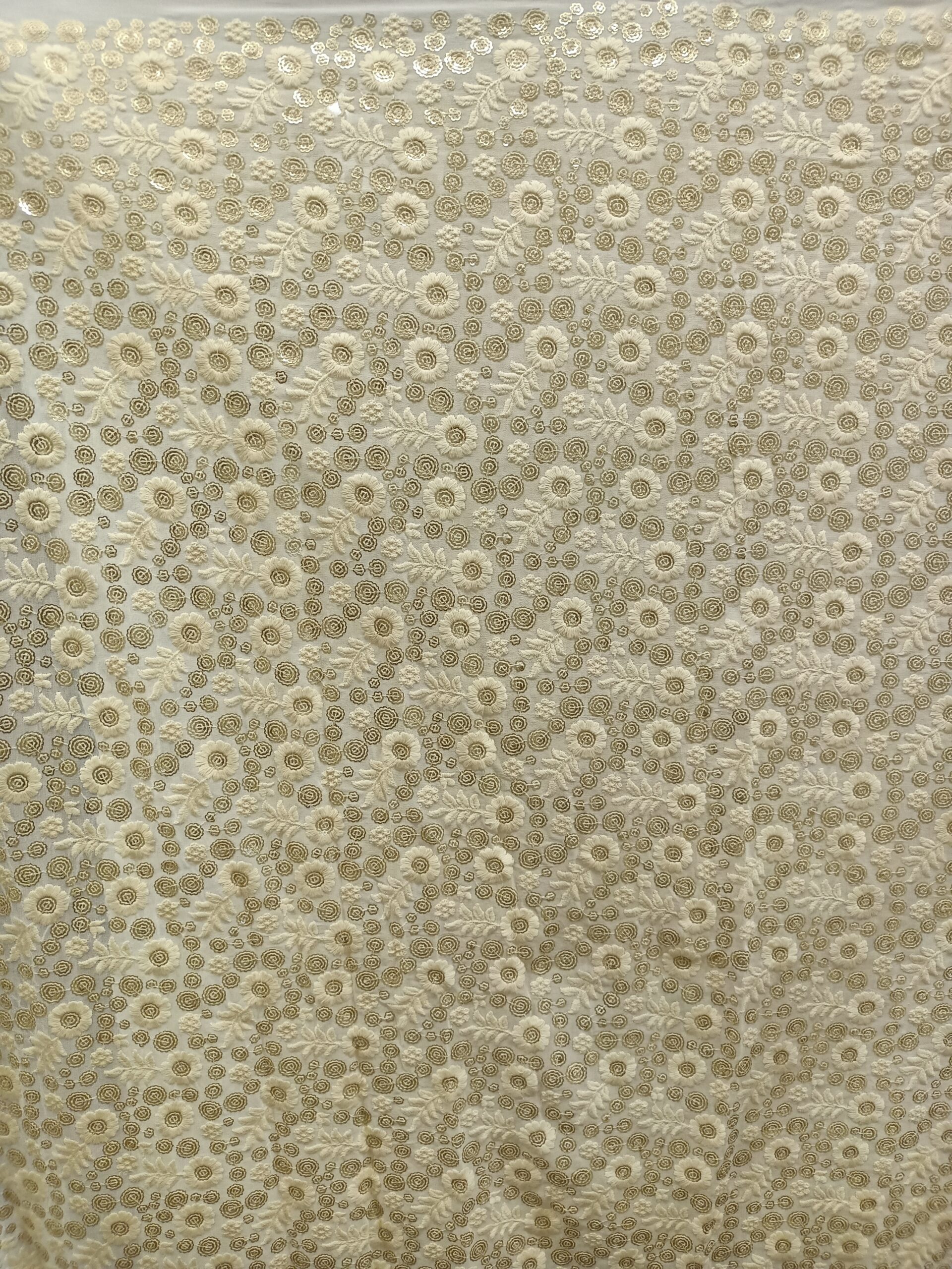 Georgette Base  Flower Embroidery Dyeble Fabric