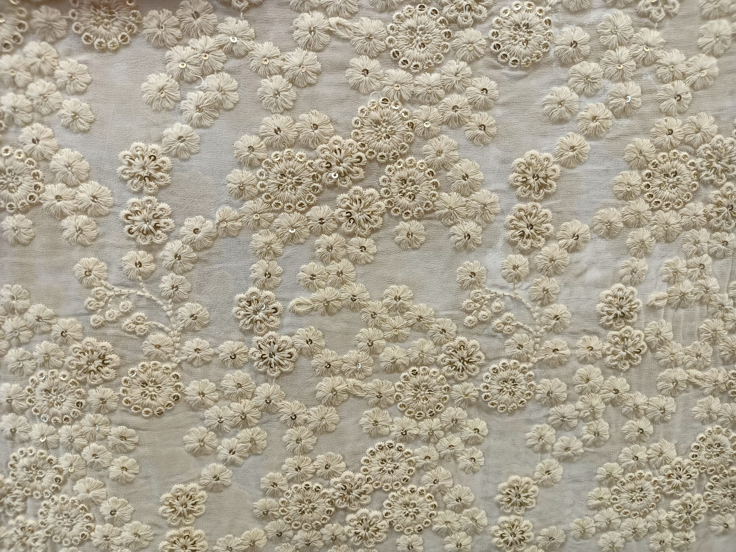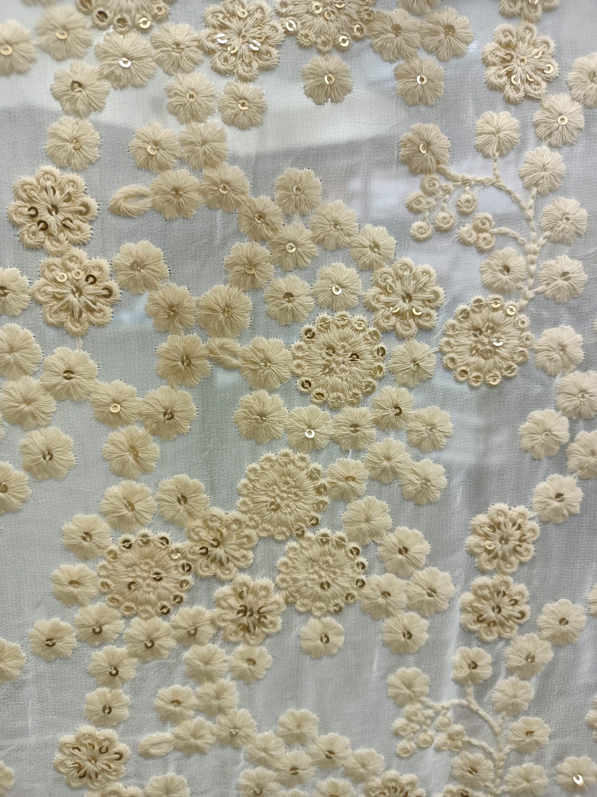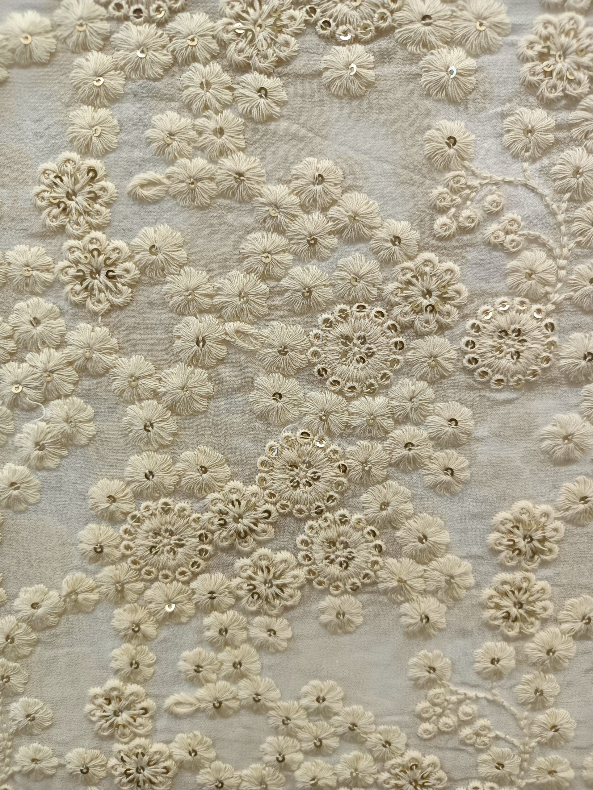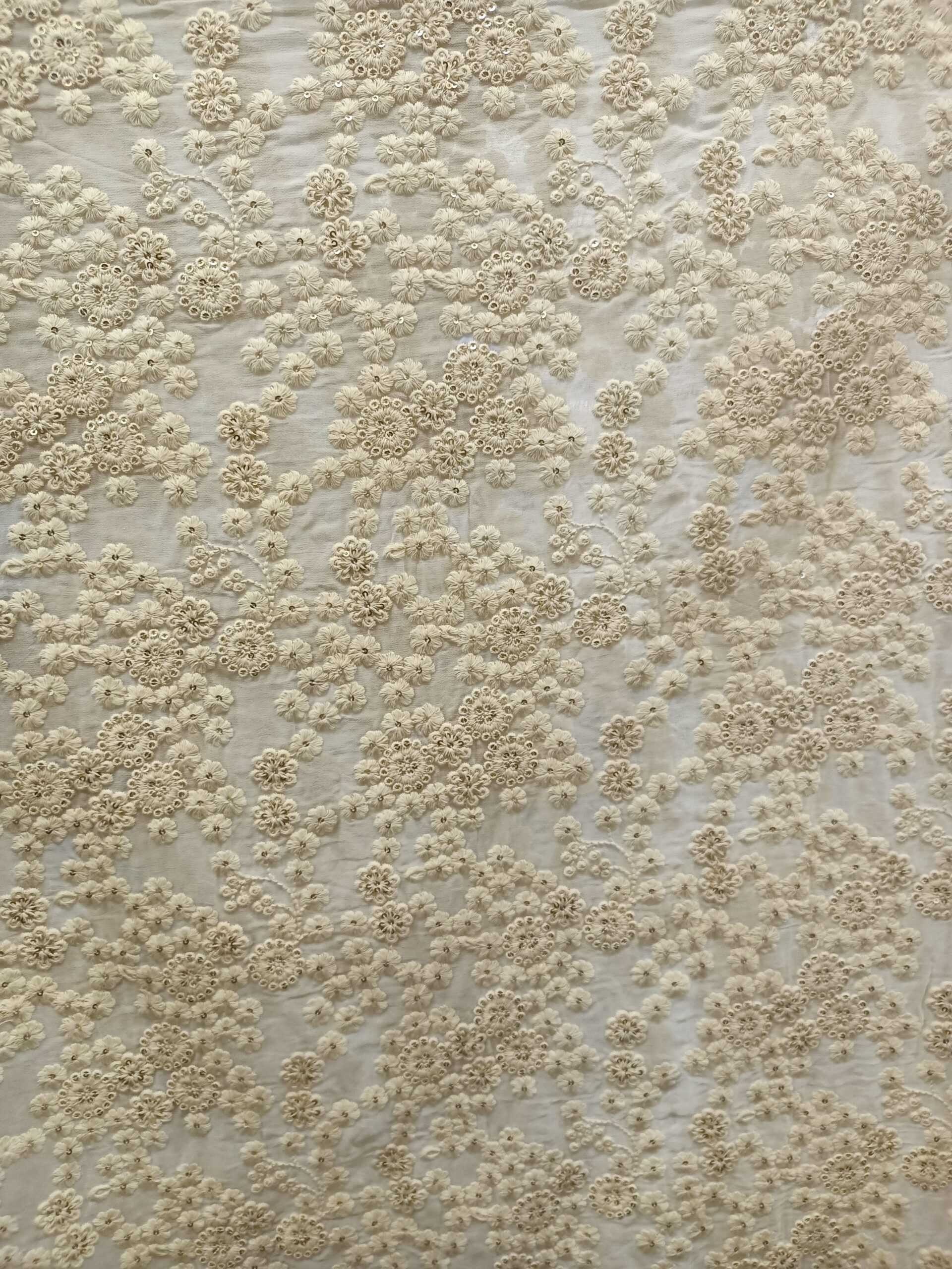 Georgette Base Flower Embroidery Dyeble Fabric