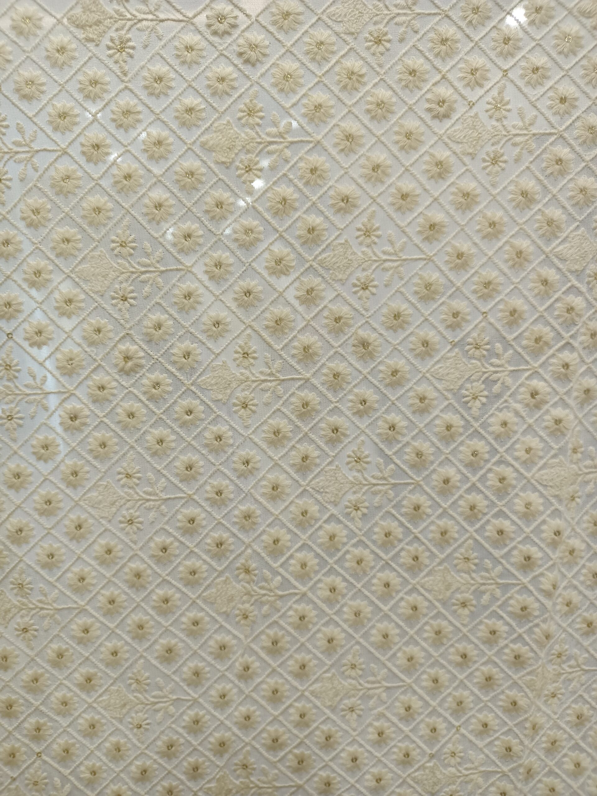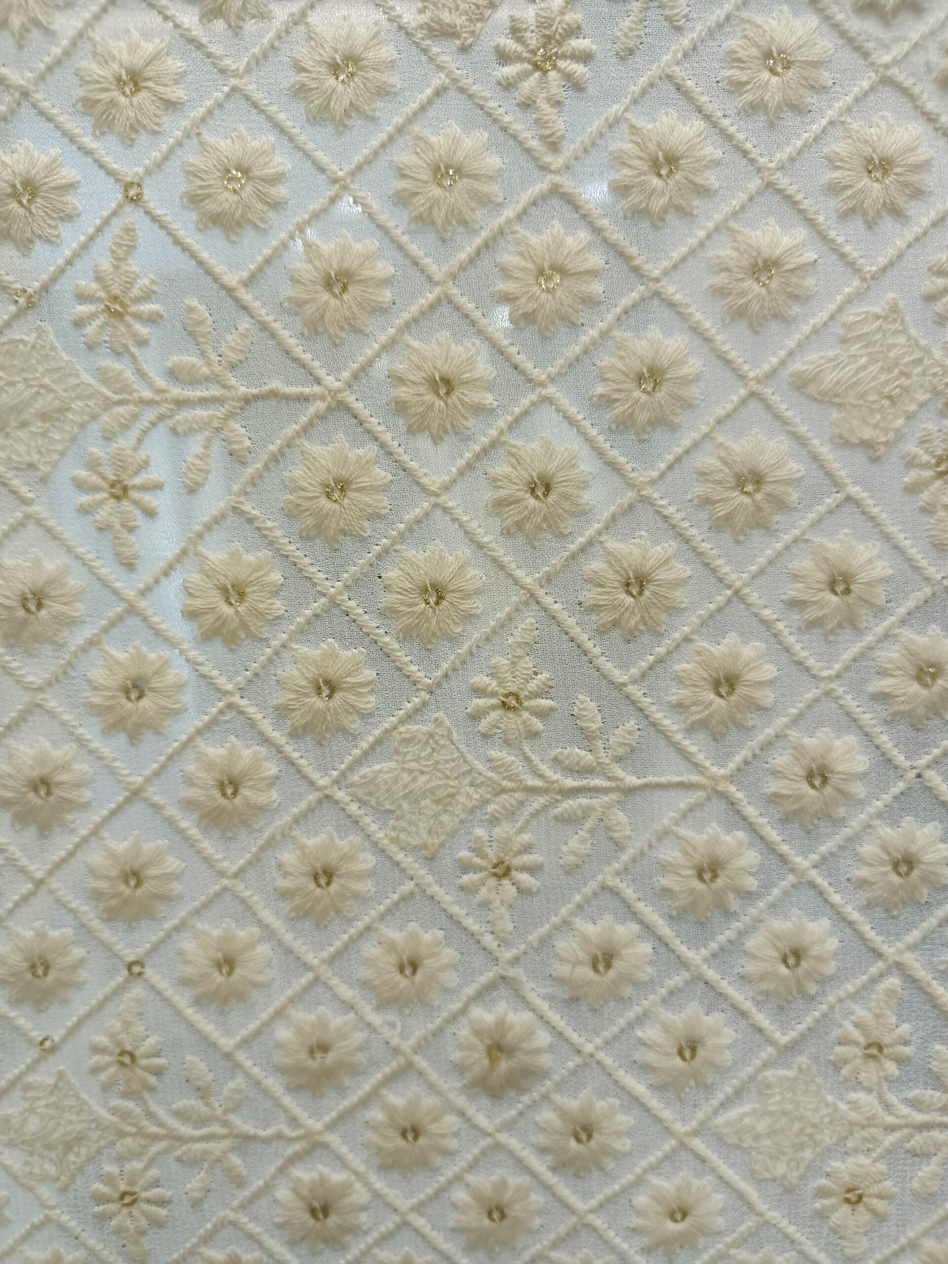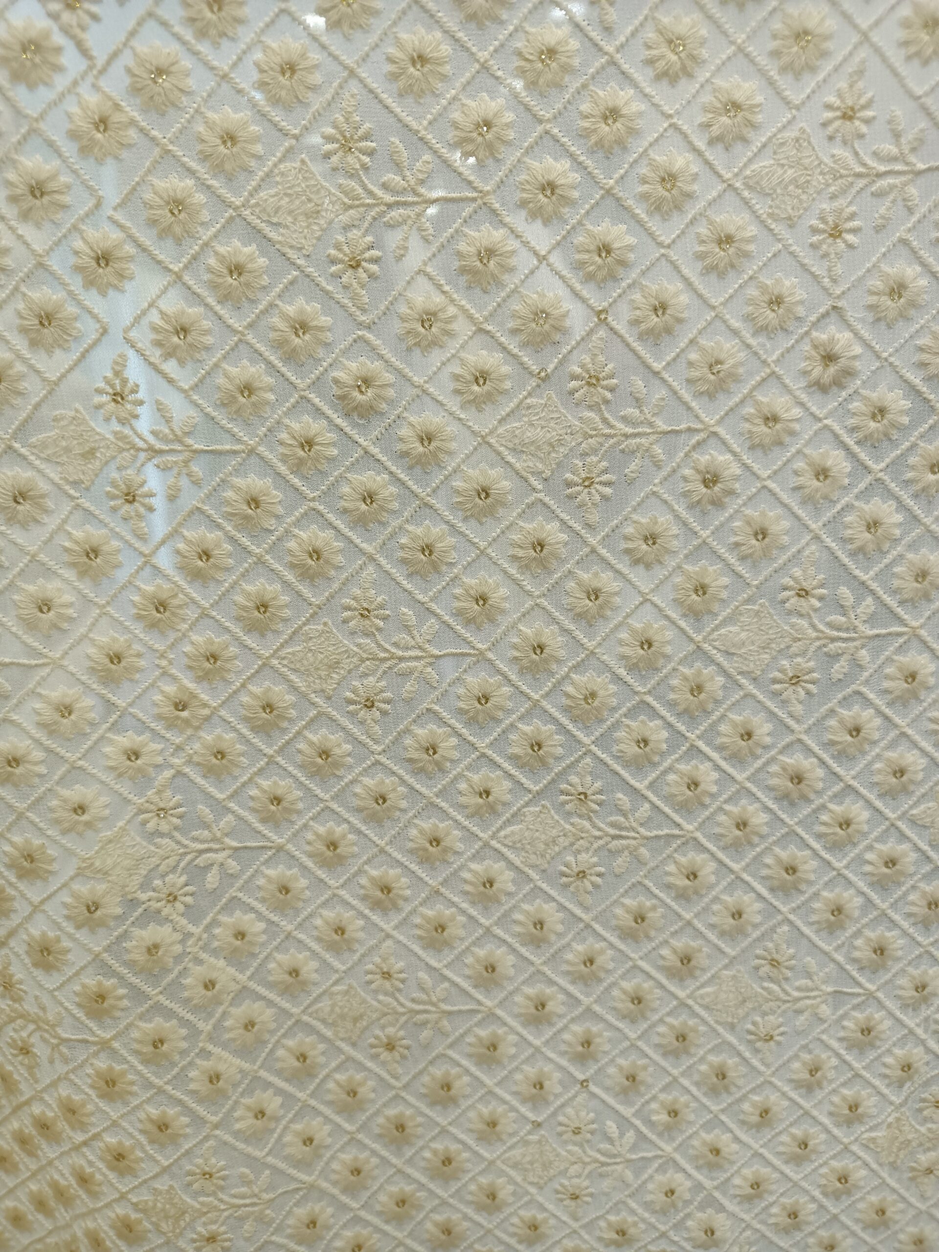 Viscose Georgette Base  Flower Embroidery Dyeble Fabric